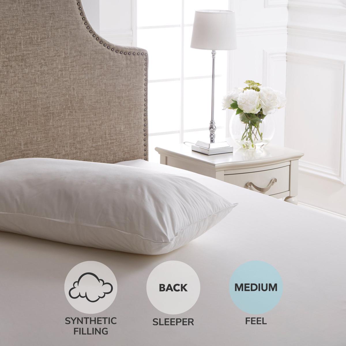 Beautifully crafted with a luxuriously soft 100% cotton cover, this kingsize pillow from the premium Dorma range stays fuller for longer thanks to the luxurious spiral fibre anti allergy treated polyester filling for a higher quality. The non-allergenic properties are ideal for ensuring a great night's sleep for allergy suffers. With an added deluxe 233 thread count, this pillow features a double stitched piped edge finish for ultimate durability. Contains recycled fibre.