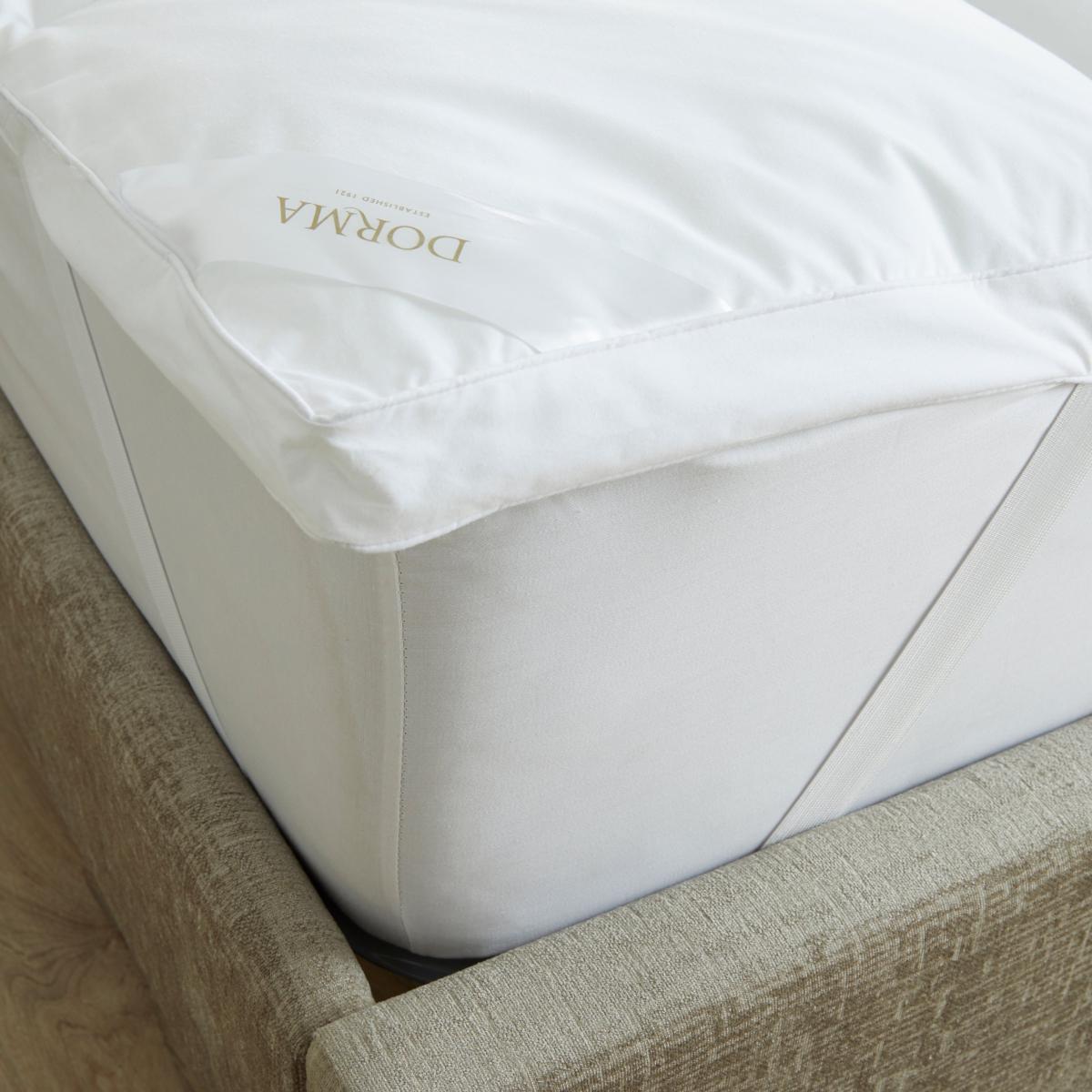From the luxury brand Dorma, these anti-allergy mattress toppers will not only give added comfort, they will help prevent the growth of bacteria. A premium 230 thread count, crisp 100% cotton handle makes this luxurious mattress topper a delight to sleep on. Filled with 100% spiral fibre filling treated with an Aegis Microbe Shield Technology, this anti allergy bedding prevents the growth of bacterial. Featuring a cassette construction and elasticated straps with a 3cm (1") walled edge, this mattress topper will stay securely in place and remain with an even distribution of filling. Easy to clean from the comfort of your home, this machine washable Dorma mattress topper is available in a range of sizes, so you can choose the perfect one for your bed.