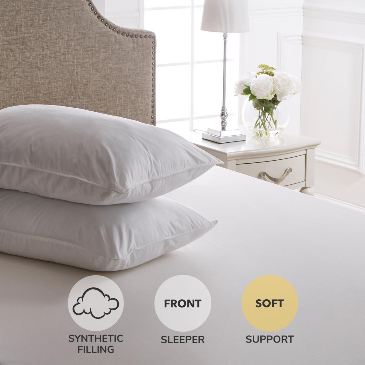 Beautifully crafted with a luxuriously soft 100% cotton cover, these soft-support pillows from the premium Dorma range stay fuller for longer thanks to the luxurious clusterfibre polyester filling for a higher quality. With an added deluxe 233 thread count, this pillow pair has excellent non-allergenic properties and a double stitched piped edge finish for ultimate durability. Keep your pillows in tip top condition for longer with our range of. Pillow Protectors. Contains a blend of recycled fibre.
