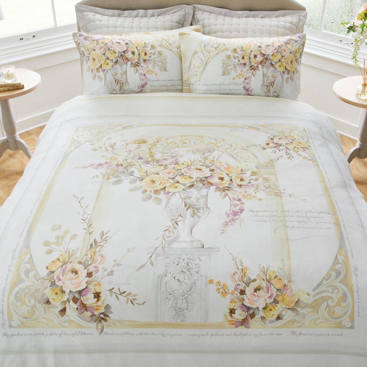 Fashioning a bold traditional hand painted floral design in mixed yellow and pink tones, Hartington also boasts decorative pillowcases and a delicate all-over rose pattern reverse. Crafted from 100% cotton, with a quality 300 thread count, this luxury duvet cover offers natural softness and breathable properties and is finished with stunning piped edges and a zip fastening. Complete with a 10 year guarantee, Hartington will offer you an effortless night's sleep for years to come. This product is STANDARD 100 by OEKO-TEX® Certified. This means that it has been tested to ensure it is free of harmful substances and therefore harmless in human ecological terms.