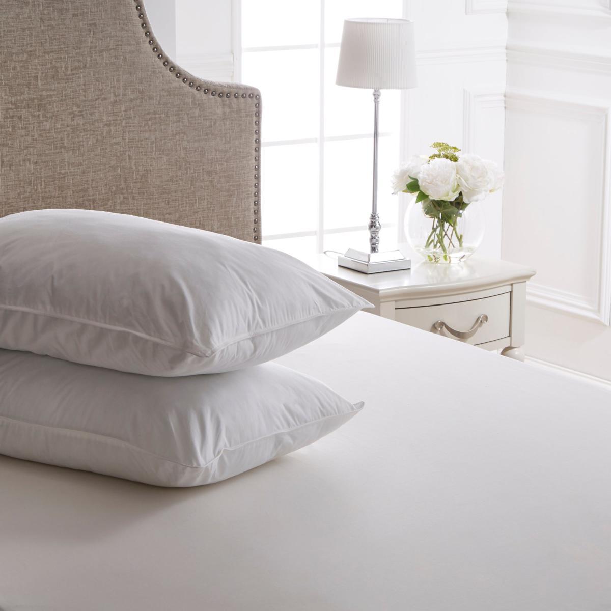 Add a luxury high quality touch to your bed with this Dorma Hungarian Goose Down Kingsize Pillow. Providing you with sumptuous soft support this pillow is ideal for front sleepers. Carefully crafted in the UK with a 100% cotton jacquard cover for sumptuous comfort, this opulent Dorma kingsize pillow is filled with top-quality 70% Hungarian goose down and 30% feather. Down is known for its outstanding softness and insulating properties which help to prevent drafts and cold spots to keep you perfectly snug at night. This pillow has a sumptuous 300 thread count and is machine washable for easy care.