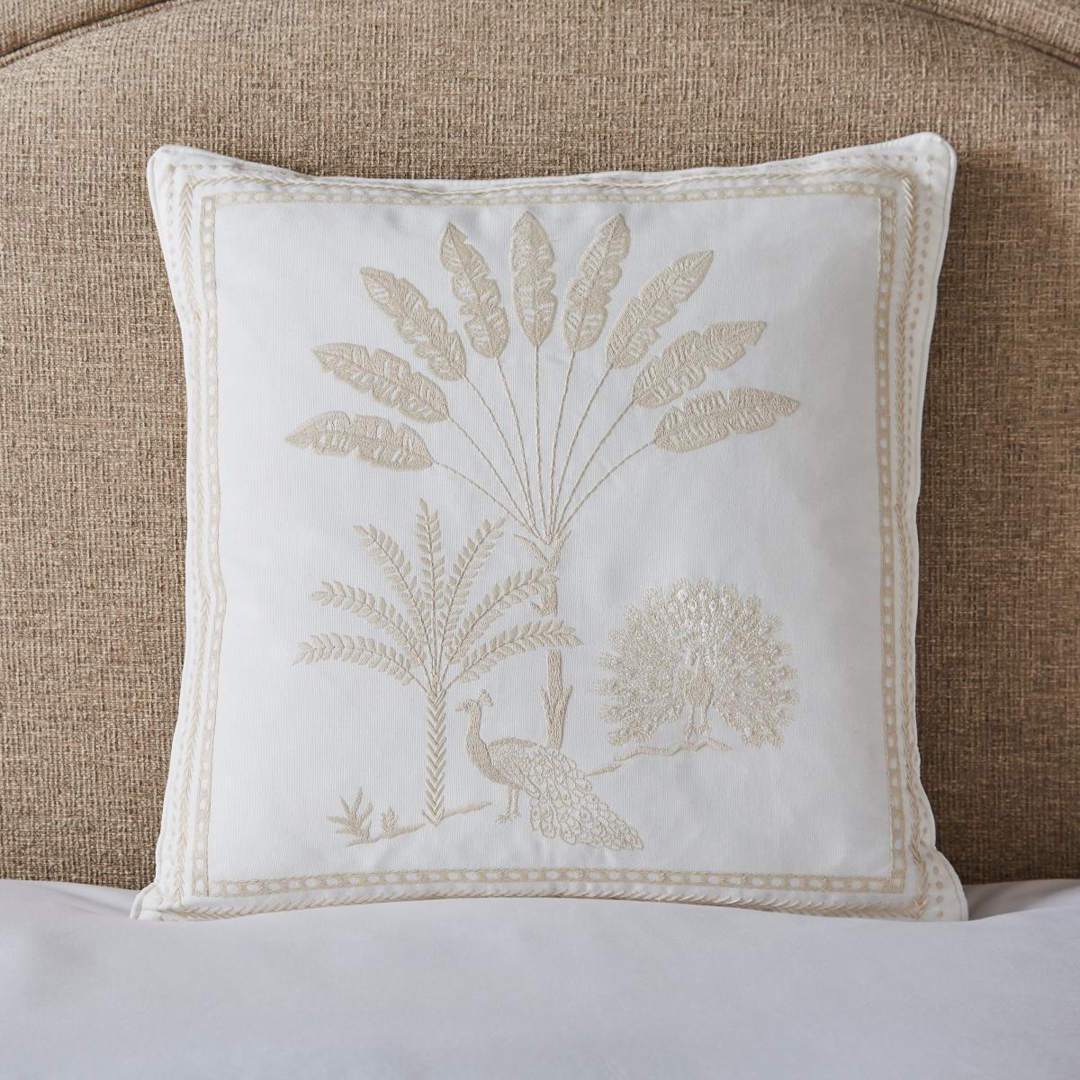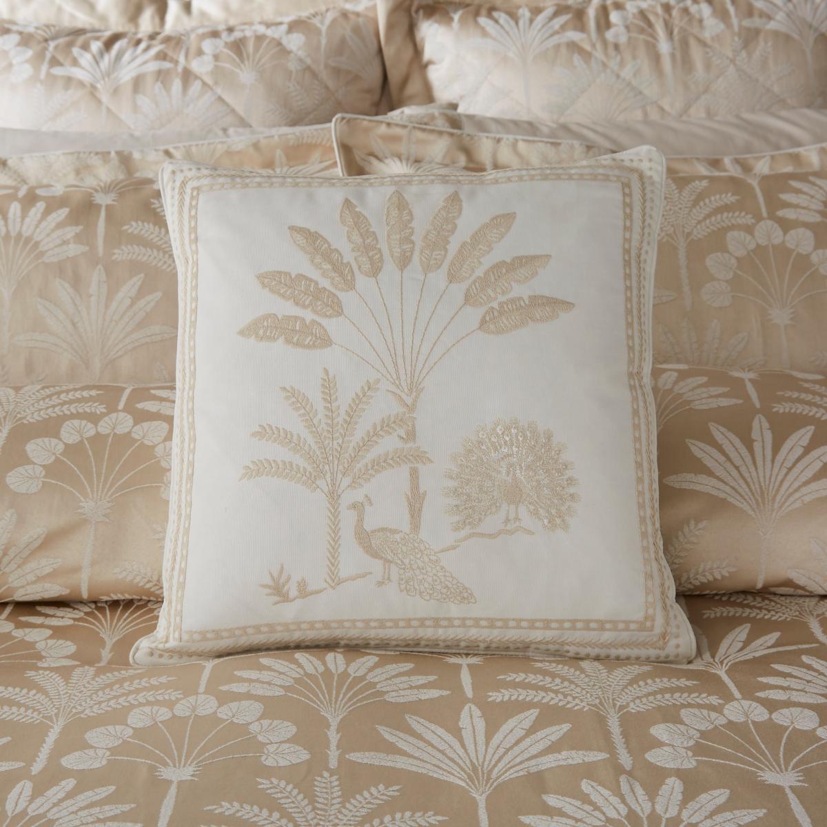 * Glamorous, Textural Cushion* Stylished Palm Trees Design* Luxurious Piping Details* Matching Items Available Give your home a refresh with this glamorous textural jacquard, featuring stylised palm trees inspired by the Deco era. The classic champagne and ivory palette is beautifully complemented by luxurious piping details. Complete your decor with coordinating curtains, bedspreads, pillow shams, and cushions - all available separately.**Dorma**Established in 1921, Dorma is a British heritage brand synonymous with quality, luxury and impeccable attention to detail. Dorma; our name is your guarantee.