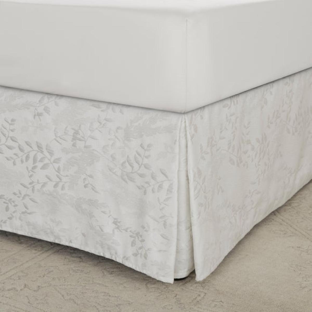 * Soft and breathable 100% Cotton Percale composition * Premium polyester and viscose blended skirt * Sophisticated floral design * Machine washable * Coordinating items available Elevate your bedding ensemble with the timeless elegance of the Dorma Wysteria Valance. Exquisitely crafted with a soft and breathable 100% cotton percale base, this valance offers a crisp, cool touch for ultimate comfort. The skirt is composed of a refined blend of polyester and viscose, woven into a shimmering jacquard that delicately catches the light to reveal a graceful trail of wisteria blooms. The sophisticated floral design adds a layer of quiet opulence to your bedroom, while its tailored construction brings a polished, hotel-quality finish to your bed. Machine washable for ease of care and beautifully coordinated with matching bedding, the Wysteria Valance is the perfect accent for a serene and stylish retreat. Dorma Established in 1921, Dorma is a British heritage brand synonymous with quality, luxury and impeccable attention to detail. Dorma; our name is your guarantee.