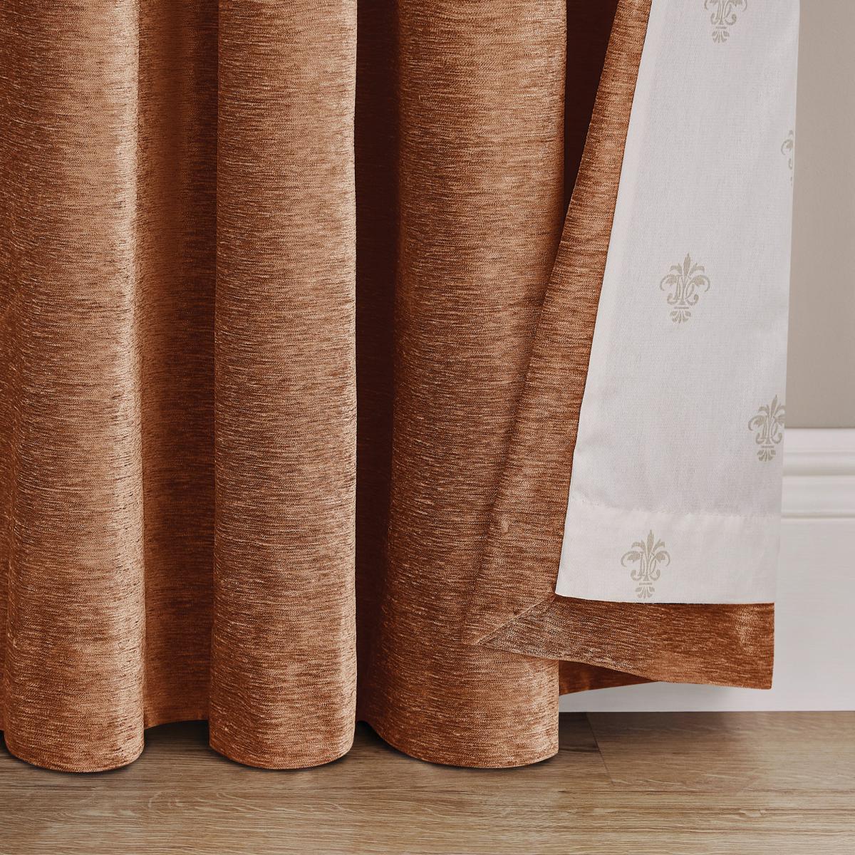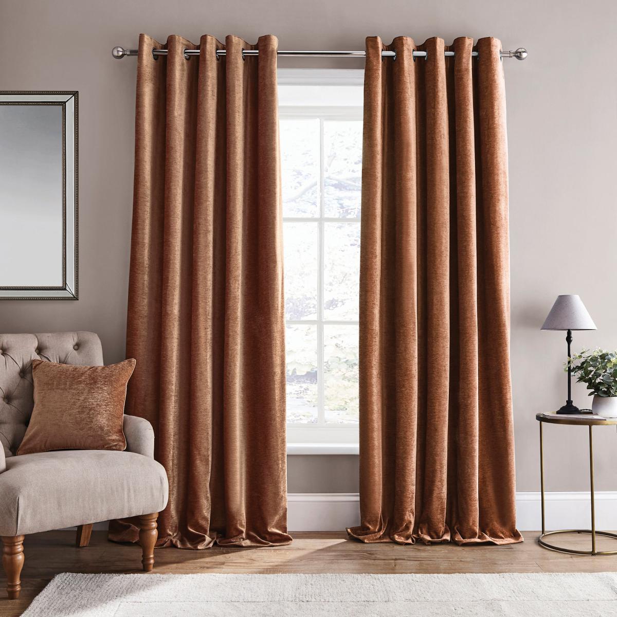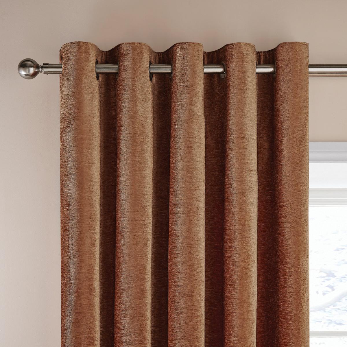 Finished in a warm, rich roasted pecan colourway and designed with a subtle textured finish, these Dorma eyelet curtains from our Luxury collection are perfect to complement a variety of decorative styles. These curtains are fashioned from quality materials for improved longevity and are plain in design to effortlessly transition with your décor without ageing a day. Featuring a full cotton sateen lining for added insulation and a fuller drape, these curtains are completed with a modern eyelet header for easy installation and smooth movement across your curtain pole. Available in a selection to sizes to suit your requirements. Please note: these curtains are sold as a pair. Professional cleaning in Perchloroethylene or equivalent recommended.