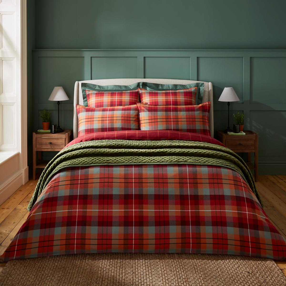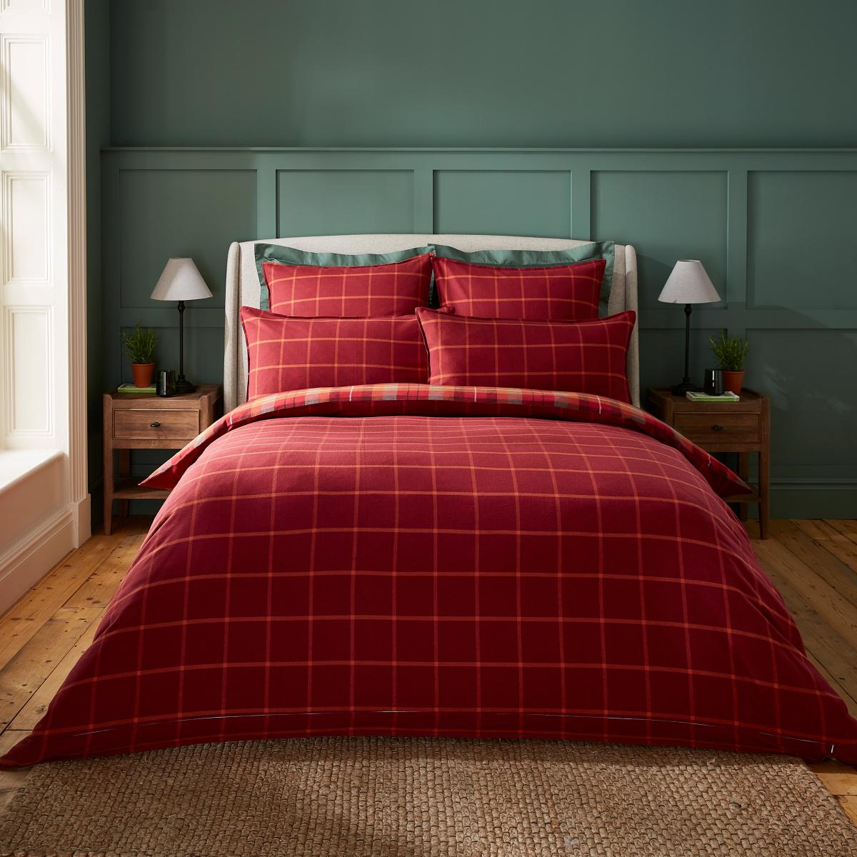 Dorma Maison Check Brushed Cotton Duvet Cover and Pillowcase Set Red