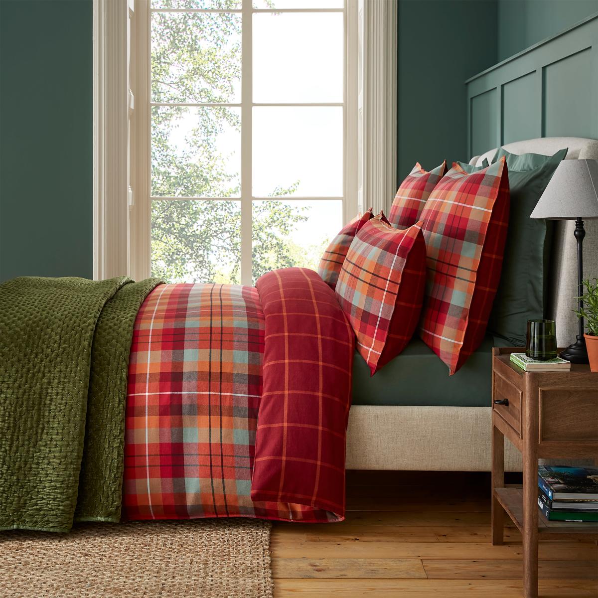 I love this duvet set for its classic, cosy appeal and versatile colour. The deep red check pattern adds warmth and makes it a natural fit for traditional, cottage, or rustic interiors, but it can also work well in contemporary spaces when paired with neutral or minimalist decor. Stylistically, it’s great for creating a welcoming bedroom atmosphere, especially in cooler months. Practical tips include pairing it with plain or subtly textured pillowcases and bedding in complementary colours like beige, grey, or navy to let the pattern stand out. Also, choosing a brushed cotton finish ensures durability and comfort, making it a sensible choice for everyday use.
