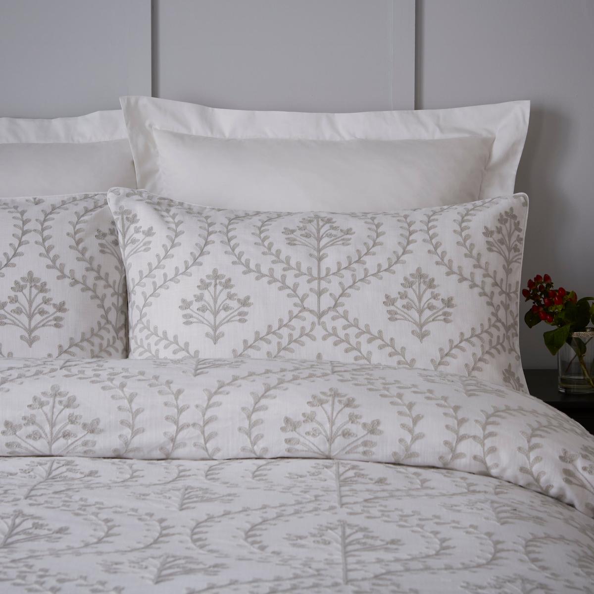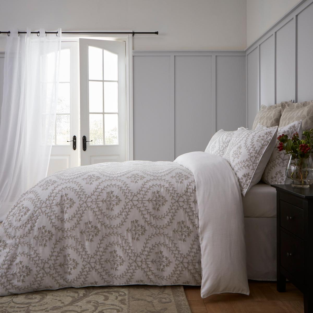 Crafted from 100% cotton slub for a softly textured feel, this simple design features a beautiful embroidered trellis, completed by a micro piped edge. Secure the cover around the duvet with the easy to use zipper fastening. The set is available in 4 sizes so you can find the perfect fit for your bed.