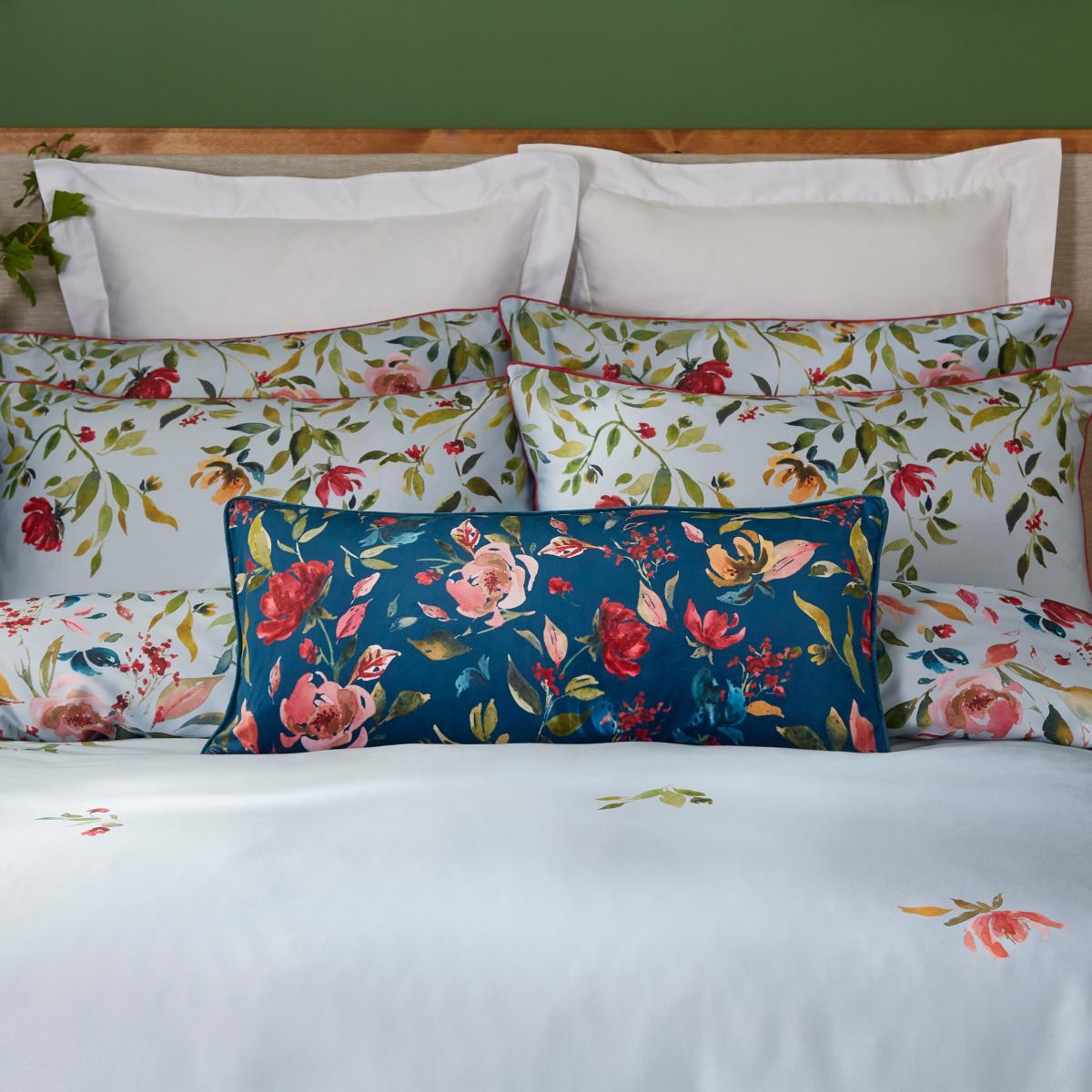* Decorative cushion* Zipper fastening* Dainty floral design* Machine washable Hand painted modern blooms as a pop of colour against a dark teal background on this decorative cushion. Rich and luxurious velvet front & reverse with scallop stitching detail on the face. Co-ordinating bedding, curtains, bedspread and pillowshams are available to purchase separately.**Dorma**Established in 1921, Dorma is a British heritage brand synonymous with quality, luxury and impeccable attention to detail. Dorma; our name is your guarantee.