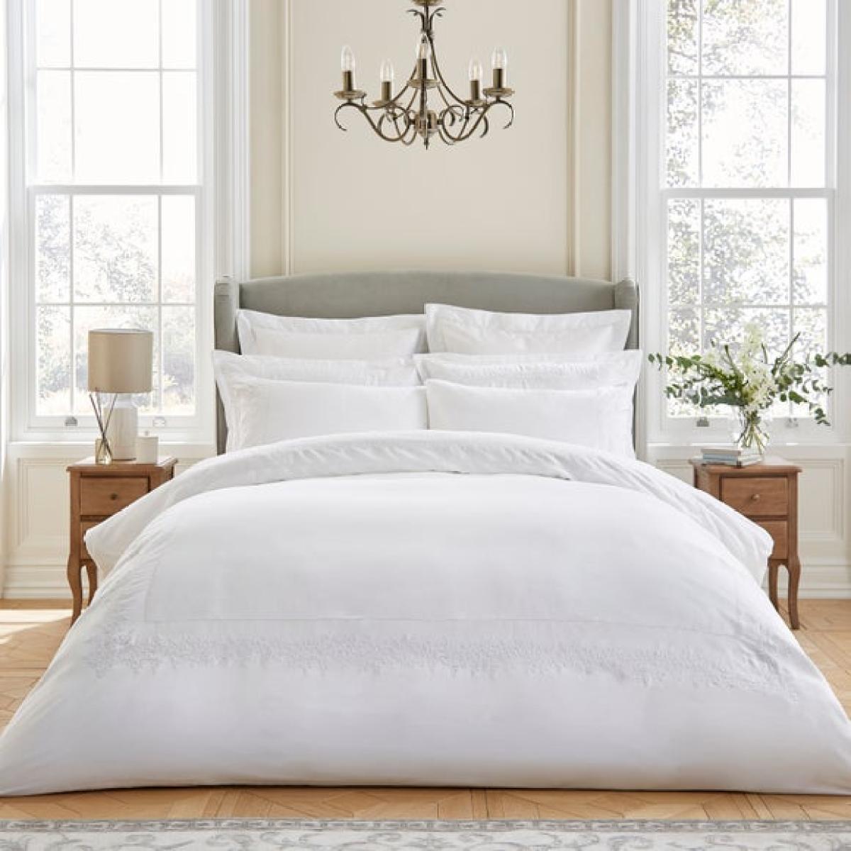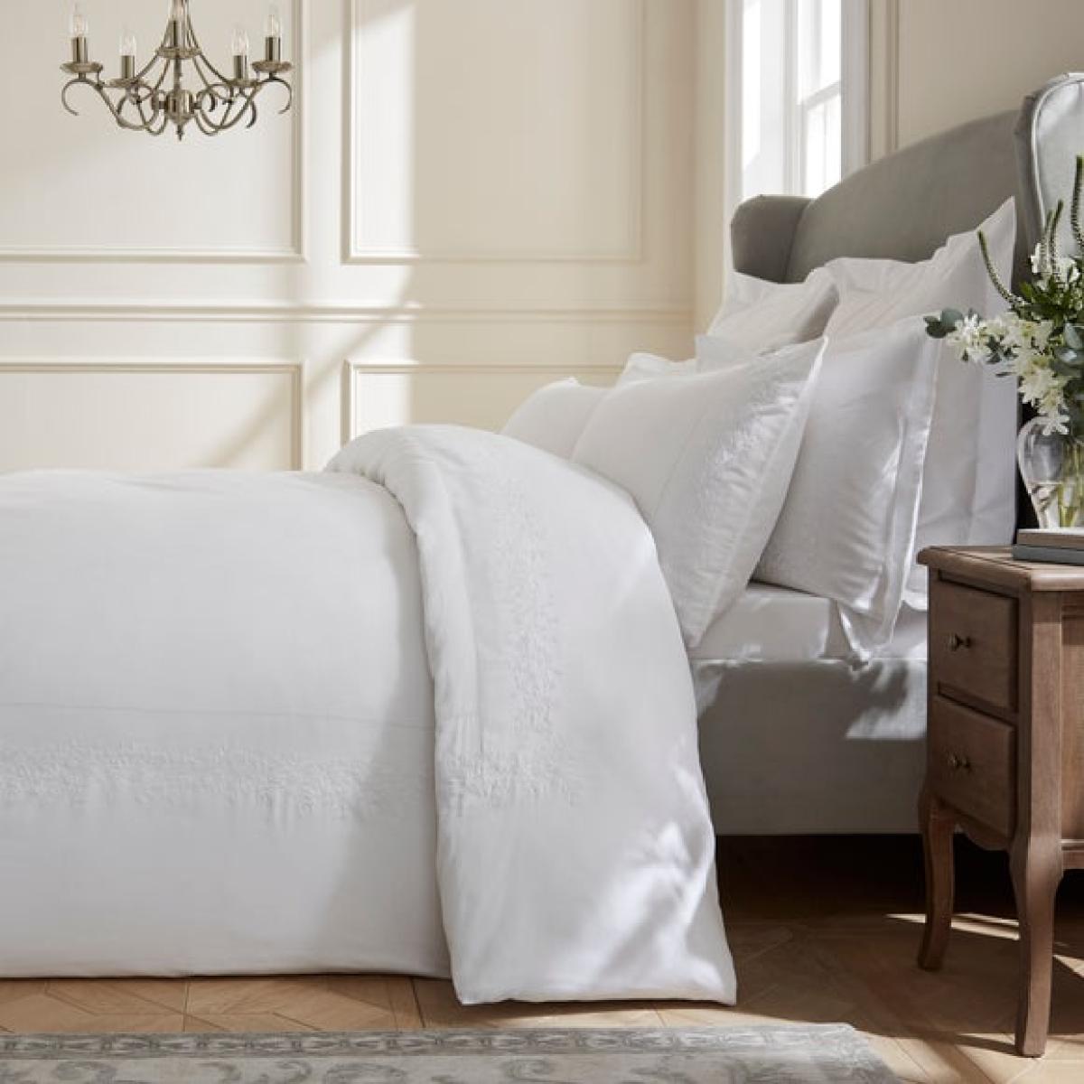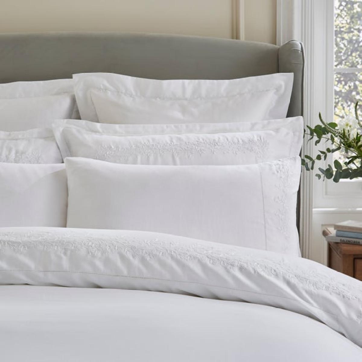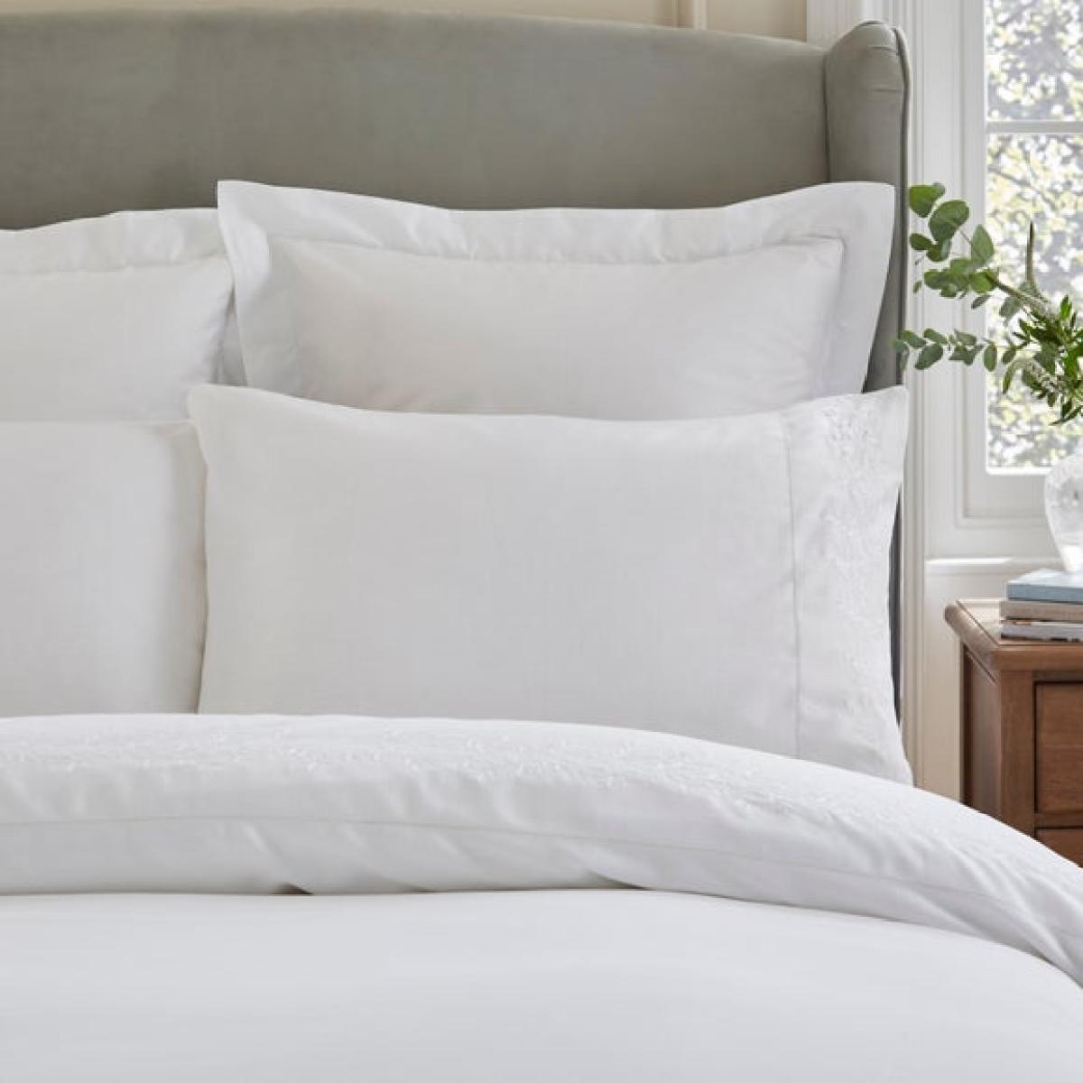 * Crafted from soft and breathable 100% Cotton composition * Delicate textured embroidery * Crisp and inviting floral design * Machine washable * Coordinating items available Elevate your bedroom with the quiet refinement of the Dorma Norwood Duvet Cover Set - a masterclass in timeless elegance. Crafted from beautifully soft and breathable 100% cotton, this set showcases delicate white-on-white embroidery, evoking the charm of vintage heirloom linens. A graceful arrangement of floral buds and foliage is intricately stitched across the fabric, offering both texture and visual serenity. Framed with a classic hemstitch border, each element is thoughtfully designed to embody understated sophistication. Crisp, fresh, and effortlessly elegant, the Norwood duvet set brings a light, airy luxury to your sleep space - perfect for those who appreciate subtle beauty and enduring style. Dorma Established in 1921, Dorma is a British heritage brand synonymous with quality, luxury and impeccable attention to detail. Dorma; our name is your guarantee.