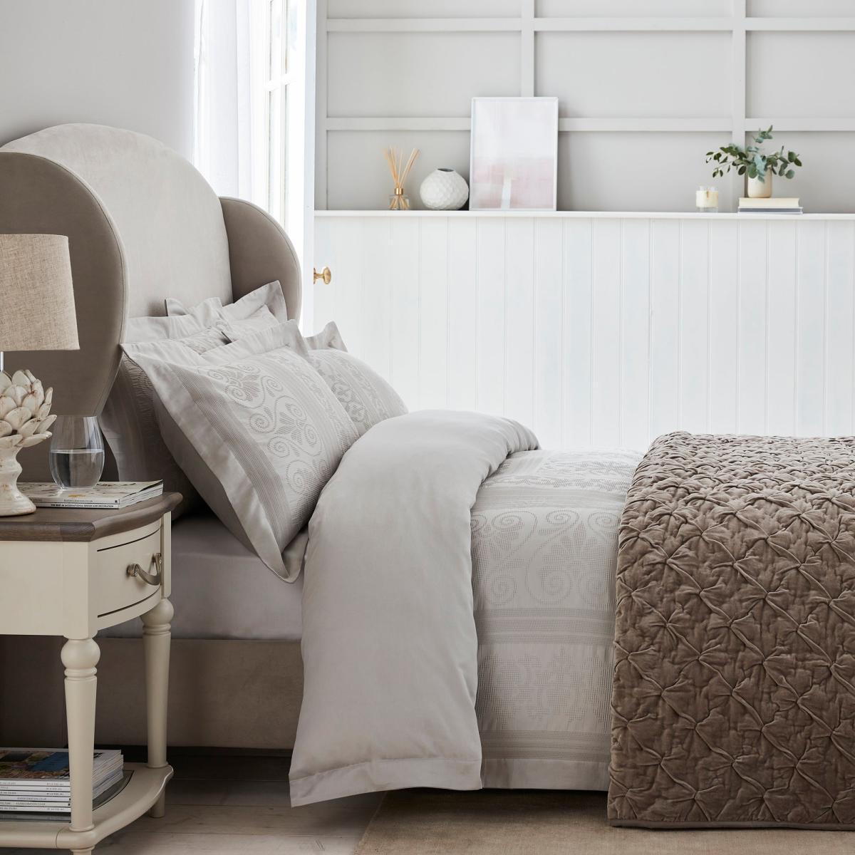 This Dorma bedspread is part of Dorma's new Purity lifestyle collection of simple luxury bedding and accessories, with each piece made to Dorma's impeccable quality standards. Natural finishes and a timeless neutral colour palette have been carefully selected throughout the collection to bring a sense of calm and tranquillity to your home. Perfect for adding a stylish touch to your bedroom, this bedding features a sumptuously soft velvet skilfully hand-stitched fabric, that creates a timeless accessory to layer in with your chosen bedlinen. This bedding is made from 100% cotton and is easy to clean. This bedspread is available in a range of sizes. 235cm x 235cm – Suitable to cover a double and kingsize bed. 265cm x 265cm – Suitable for a super kingsize bed.