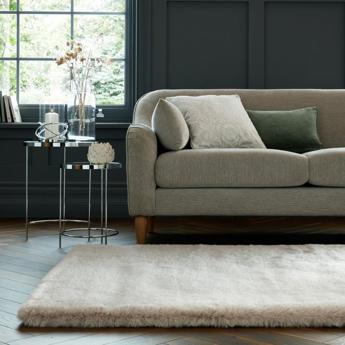 Dorma Luxury Faux Fur is part of Dorma's new Purity lifestyle collection of simple luxury bedding and accessories, with each piece made to Dorma's impeccable quality standards. Natural finishes and a timeless neutral colour palette have been carefully selected throughout the collection to bring a sense of calm and tranquillity to your home. The Dorma Purity Luxury Faux Fur rug pairs a deep 5cm pile with natural shades, for a luxe Faux look. In densely woven Polyester the Dorma Purity Luxury Faux Fur is easy to care for with minimal shedding. We love using Faux Furs to add a touch of luxe to cosy spaces. This is a machine-made rug. When opening, re-roll your rug pile out and leave in a warm room for 24 hours before putting in place, this will help to reduce wrinkles and curling from packing. A small amount of fibre loss is normal on a new rug. Do not pull any loose threads, please cut them carefully with scissors to remove. Avoid prolonged exposure to direct sunlight as this may cause fading of the colour. Turn your rug regularly to ensure even wear and reduce pressure marks from furniture. Before using any cleaning products on your rug, test on an inconspicuous area first to ensure it does not affect the colour. Clean spills immediately by blotting with a clean dry white cloth - do not rub as this may stain the fibres. Vacuum your rug regularly to remove everyday dirt, we recommend the use of a suction type vacuum cleaner as a rotating vacuum brush can cause damage to the pile surface. We recommend the use of an anti-slip mat beneath your rug to prevent it from slipping and sliding out of place. Latex is used on the back of this rug. Please do not leave babies or young children unsupervised on this rug.