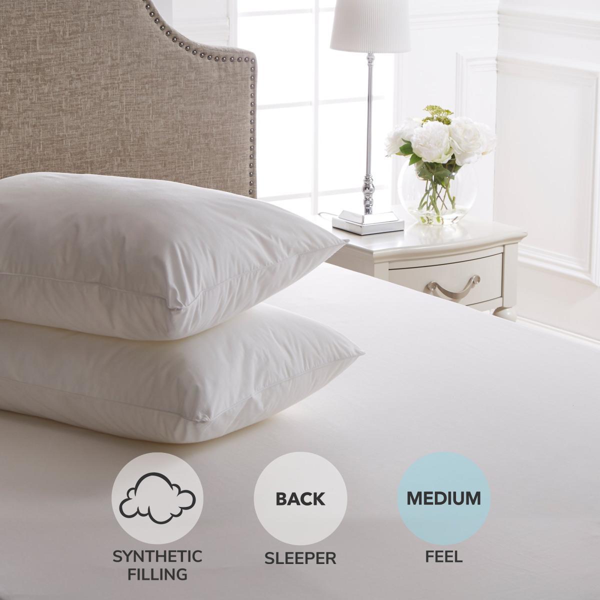For a premium synthetic down like alternative, these sumptuously crisp and silky pair of pillows from the stylish Dorma range provide medium-support great for those who sleep on their backs. Crafted from the finest synthetic fibres encased within a crisp cotton cover for breathability and to keep you cool, this pillow pair is lightweight and extra soft just like down. With a 230 thread count, these down like pillows have been manufactured in the UK and are machine washable for your convenience. Keep your pillows in tip top condition for longer with our range of. Pillow Protectors.