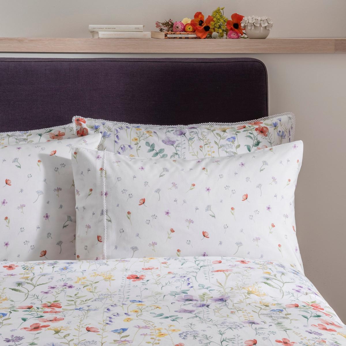Dorma Wildflower Cuffed Pillowcase White / Purple