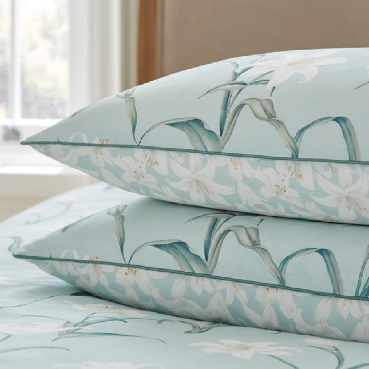 * Crafted from soft and breathable 100% Cotton Sateen * Sophisticated floral design * Machine washable * Coordinating items available Delicate and graceful, the Dorma Wildmere Oxford Pillowcase Pair brings a serene floral charm to any setting. Crafted from ultra-smooth 100% cotton sateen, the pillowcases feature an elegant display of lilies drifting across a tranquil seafoam backdrop. A contrast piped edge enhances the refined silhouette, while the breathable sateen fabric offers a soft, polished feel against the skin. Perfect for those who seek understated luxury with a fresh, peaceful twist, this pair is a beautiful complement to the full Wildmere collection. Dorma Established in 1921, Dorma is a British heritage brand synonymous with quality, luxury and impeccable attention to detail. Dorma; our name is your guarantee.