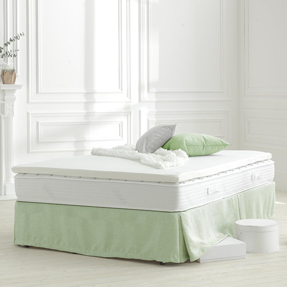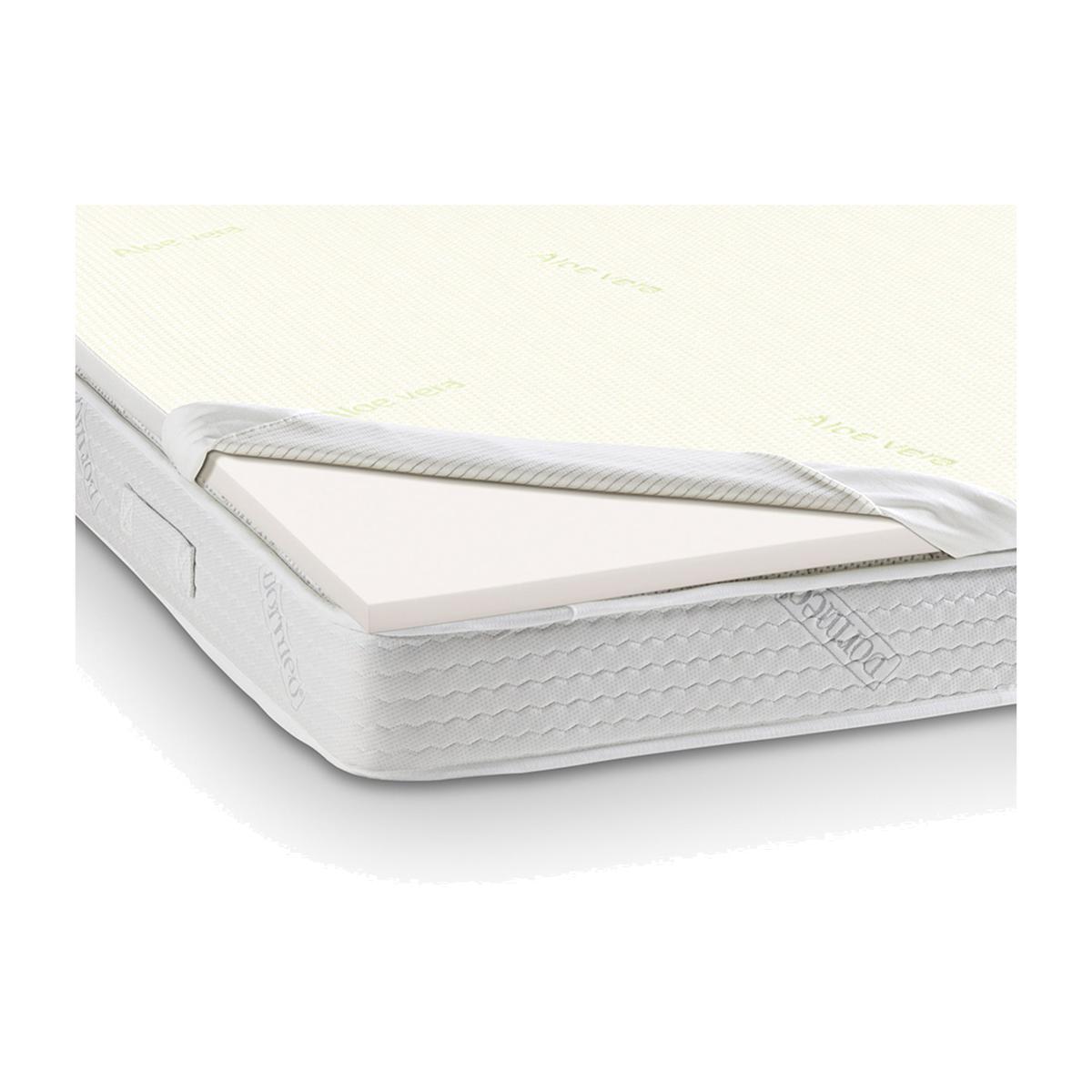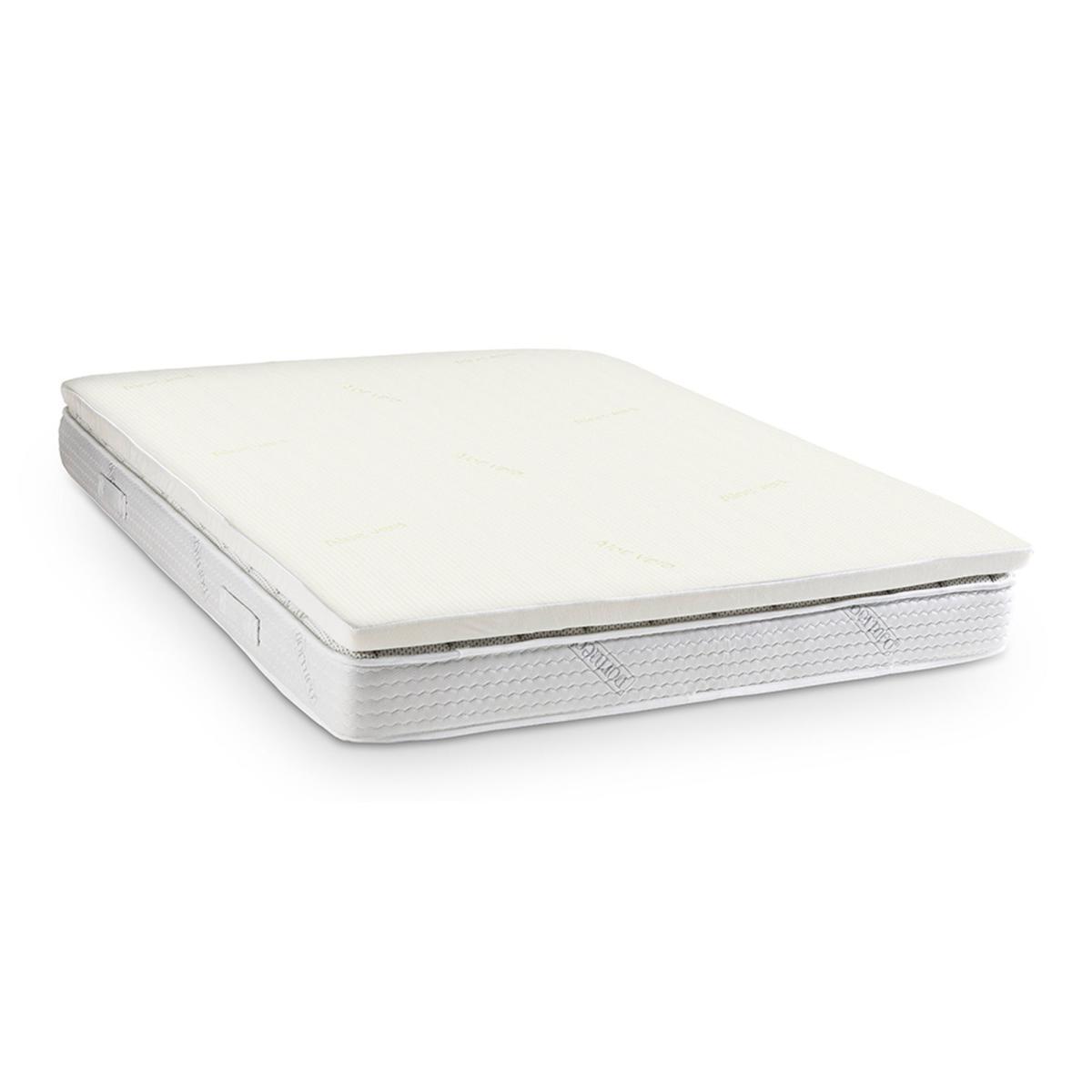 This mattress topper with a supportive memory foam layer and visco-elastic pressure relieving material, moulds to your unique body shape for blissful comfort. It remembers its shape, returning to its original form night after night. Enriched with aloe vera this topper has many benefits with aloe vera being renowned for its natural healing, health, beauty and rejuvenating properties. Rejuvenate your mattress with this topper to provide cool luxury comfort and support at a fraction of the cost of a new mattress. This topper is easy to roll up and store away or even take with you for octaspring comfort when staying away from home. This topper is non-allergenic and protects against dust mites and bacteria to keep your bed fresh and clean, creating a healthy sleep environment.