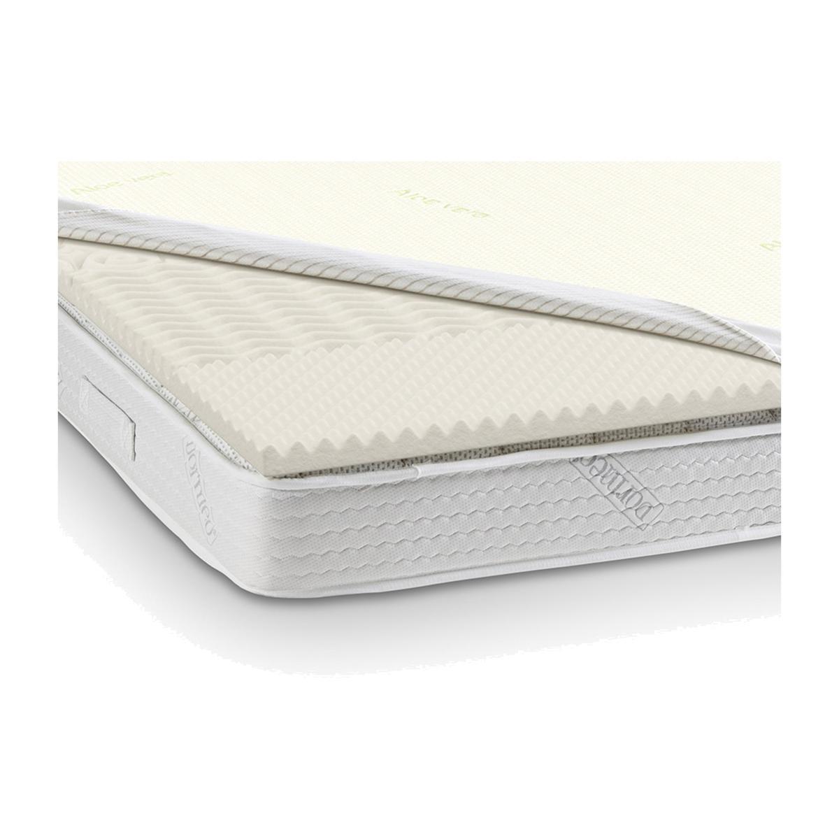 This Aloe Vera Zoned Mattress Topper provides unique zoned comfort to support your body's natural shape, coupled with Aloe Vera for a soothing sleep environment. With a supportive memory foam layer and visco-elastic pressure relieving material this topper moulds to your unique body shape for blissful comfort. It remembers its shape, returning to its original form night after night. With 40% more memory foam Extra thick memory foam layer for additional support and comfort. This topper has 5 comfort zones that provided personalised comfort and support for your entire body, delivering perfect spine alignment. The channelled ventilation includes unique non-slip material that ensures the mattress never moves, providing an effortless sleeping environment. This topper is easy to roll up and store away or even take with you for octaspring comfort when staying away from home. This topper is non-allergenic and protects against dust mites and bacteria to keep your bed fresh and clean, creating a healthy sleep environment.