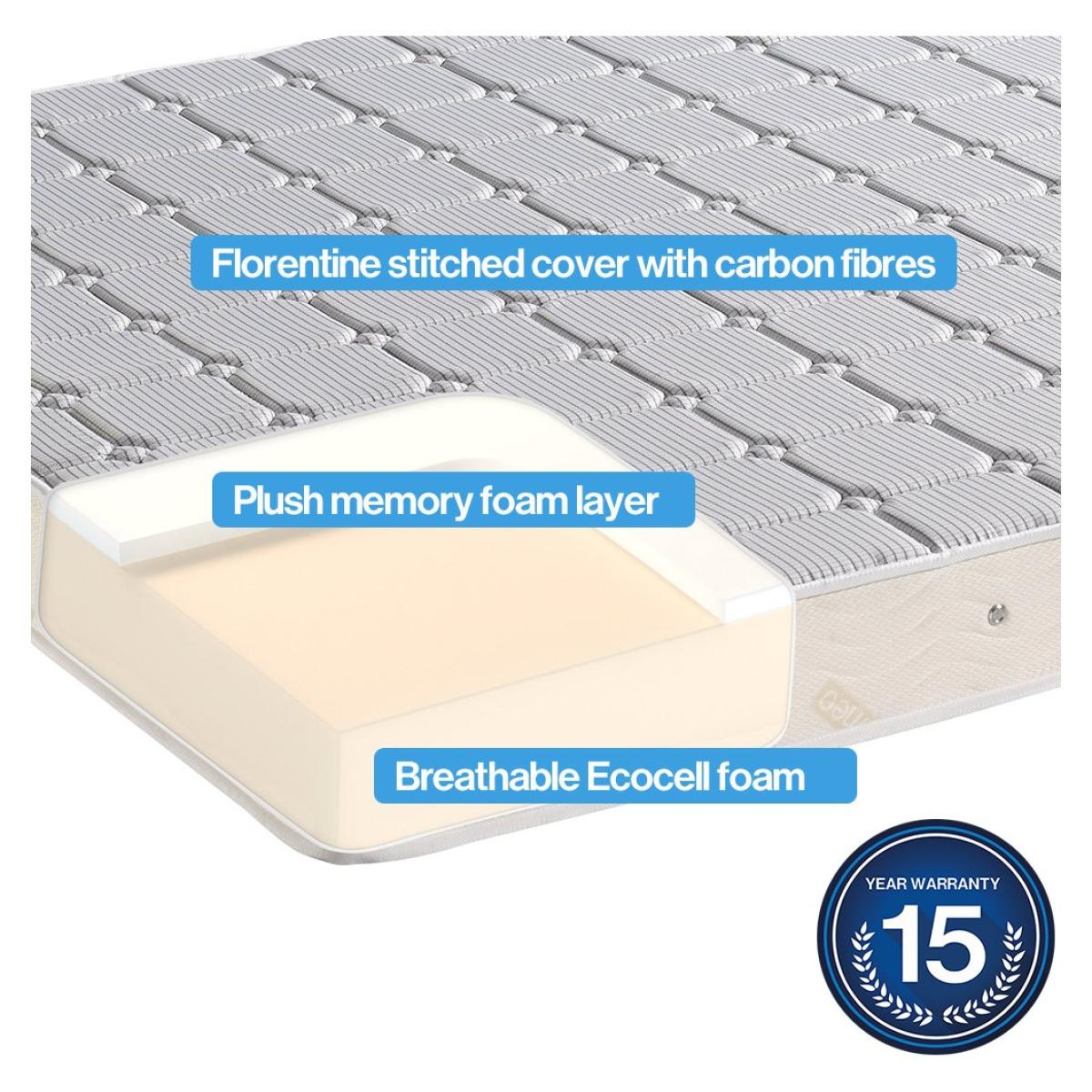 Our Memory Classic memory foam mattress offers the best balance of innovative design with pressure-relieving memory foam, finished in a luxurious Florentine-stitched cover infused with sanitized protection for a restful and hygienic sleep every night. The 3-dimensional Ecocell Foam core features elasticity to reduce painful pressure points as well as ensuring efficient air circulation. Ecocell foam and air vents allow for optimum breathability throughout the mattress. A layer of pressure-relieving memory foam clever moulds to every contour of your body for ultimate support all night long. Anti-bacterial, anti-dust mite and anti-fungal sanitized protection offers the most hygienic sleep environment. Part of the Dormeo collection. Medium firm feel. Memory foam mattress. Damask cover with quilted finish. No roll together. Anti allergy. Air vents. Mattress size W90, L190, D14cm. Rotate mattress regularly. Package Dimensions: Package 1 dimensions: H105, W30, D30cm. Package 1 weight: 14.2kg. General information: Manufacturer's 15 year guarantee.