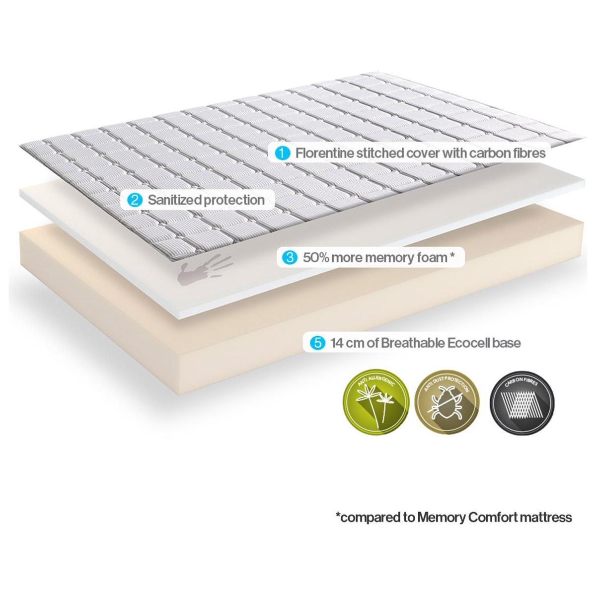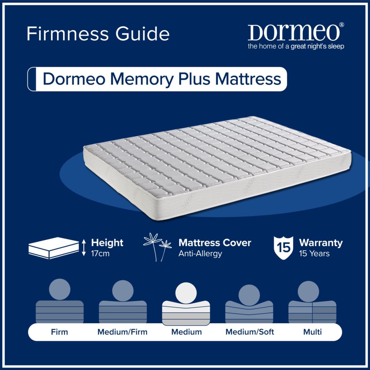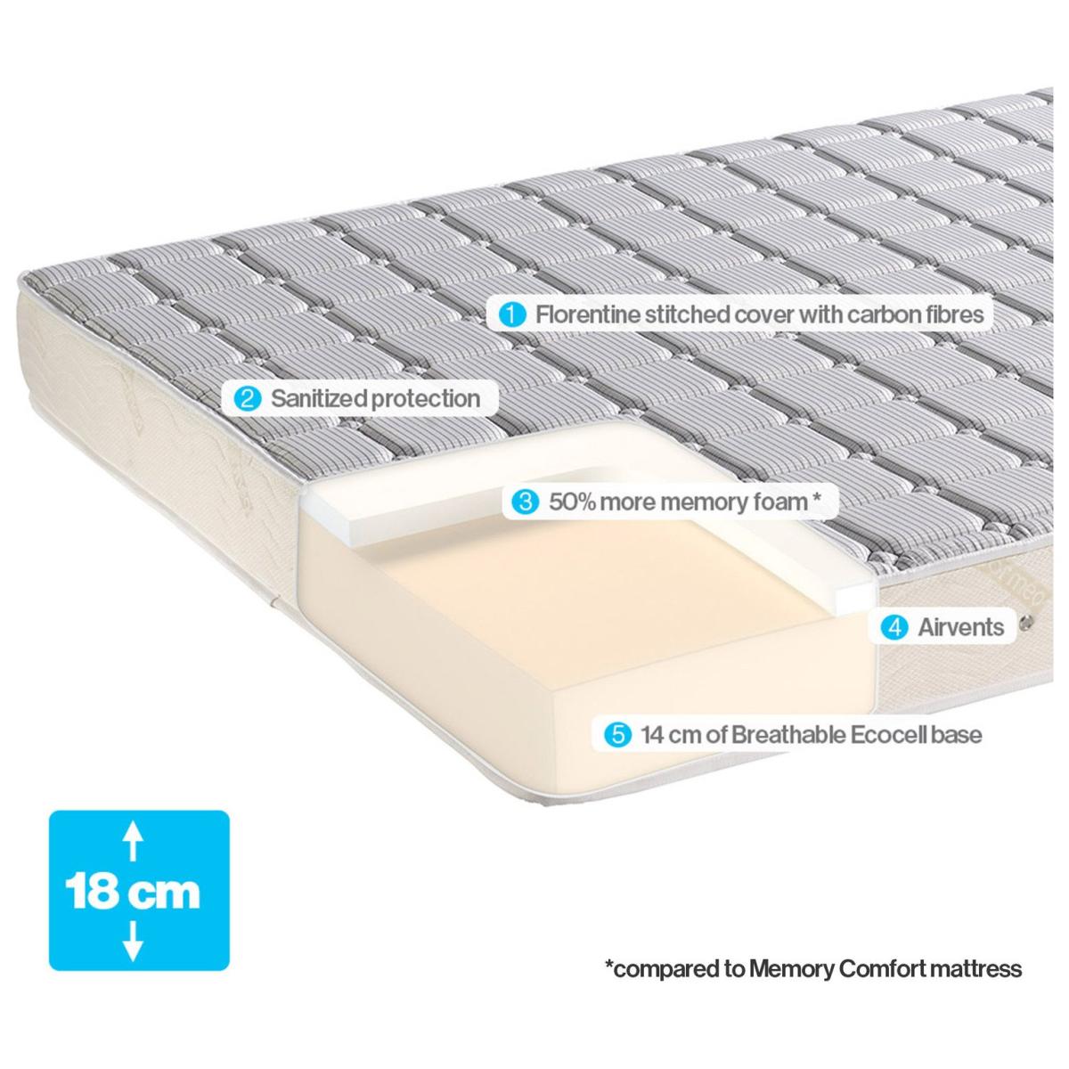Upgrade to the Dormeo Memory Plus memory foam mattress and benefit from 50% more pressure-relieving memory foam compared to the Memory Classic mattress. This mattress is designed to cradle and support you night after night to avoid you waking up with aches and pains. Wrapped in a luxurious Florentine-stitched cover with woven carbon fibres and infused with sanitized protection ensuring a hygienic sleep environment. 50% more pressure-relieving memory foam originally designed by NASA, cleverly moulds to every contour of your body, delivering you restful and supportive sleep right through until morning. The Ecocell Foam core has been developed to guarantee adaptable support reducing painful pressure points night after night. Anti-bacterial, anti-dust mite and anti-fungal sanitized protection offers the most hygienic sleep environment. Four specifically designed air vents ensuring constant air circulation for ultimate breathability. Part of the Dormeo memory collection. Medium feel. Memory foam mattress. Damask cover with quilted finish. No roll together. Anti allergy. Air vents. Mattress size W90, L190, D17cm. No-turn mattress. Easy care no turn mattress. Package Dimensions: Package 1 dimensions: H105, W30, D30cm. Package 1 weight: 15.5kg. General information: Manufacturer's 15 year guarantee.