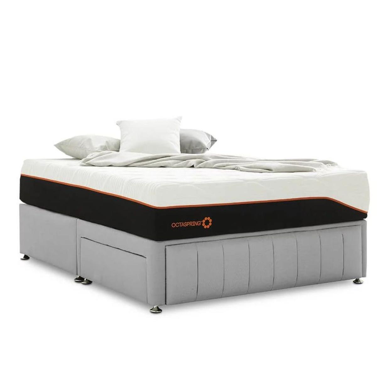 Add the perfect touch to your bedroom with the Roma divan. We love the attractive vertical fluting on the divan's footend giving this style a modern twist. This softly cushiond divan bed base adds comfort and style to both classic and modern design schemes. Choose from a selection of stylish colours to best suit your decor. Made from solid wood and upholstered with beautiful Belgium textiles it comes with a modern feature footend, inspired by the Roman columns. This divan bed comes with a choice of drawers options. Choose from no drawers, 2 drawers at the footend of the bed, 4 full size drawers, or 2 full drawers with half-size continental drawers at the head of the bed - great for bedrooms with bedside tables!. Proudly hand made in Great Britain the Roma divan will bring a timeless elegance in every bedroom. All screens vary in colour reproduction and whilst every effort has been made to display the colour as accurately as possible it is for guidance only.