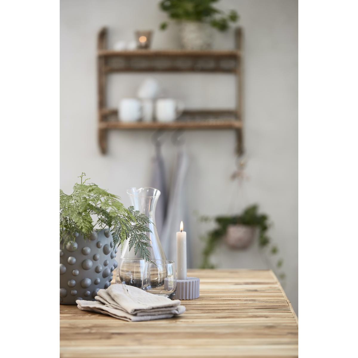 Dormia candle lantern 4 cm from Danish Lene Bjerre has a soft ribbed shape and is made of hand-blown glass. Dsiplay a tealight in the candle lantern and add it to your table setting or group it with other pieces on the side table or desk.