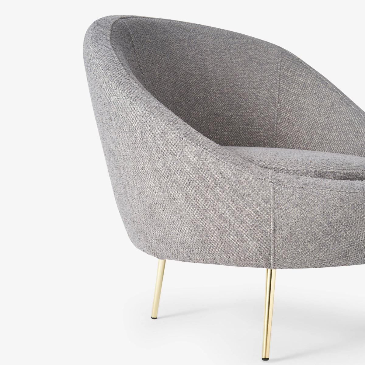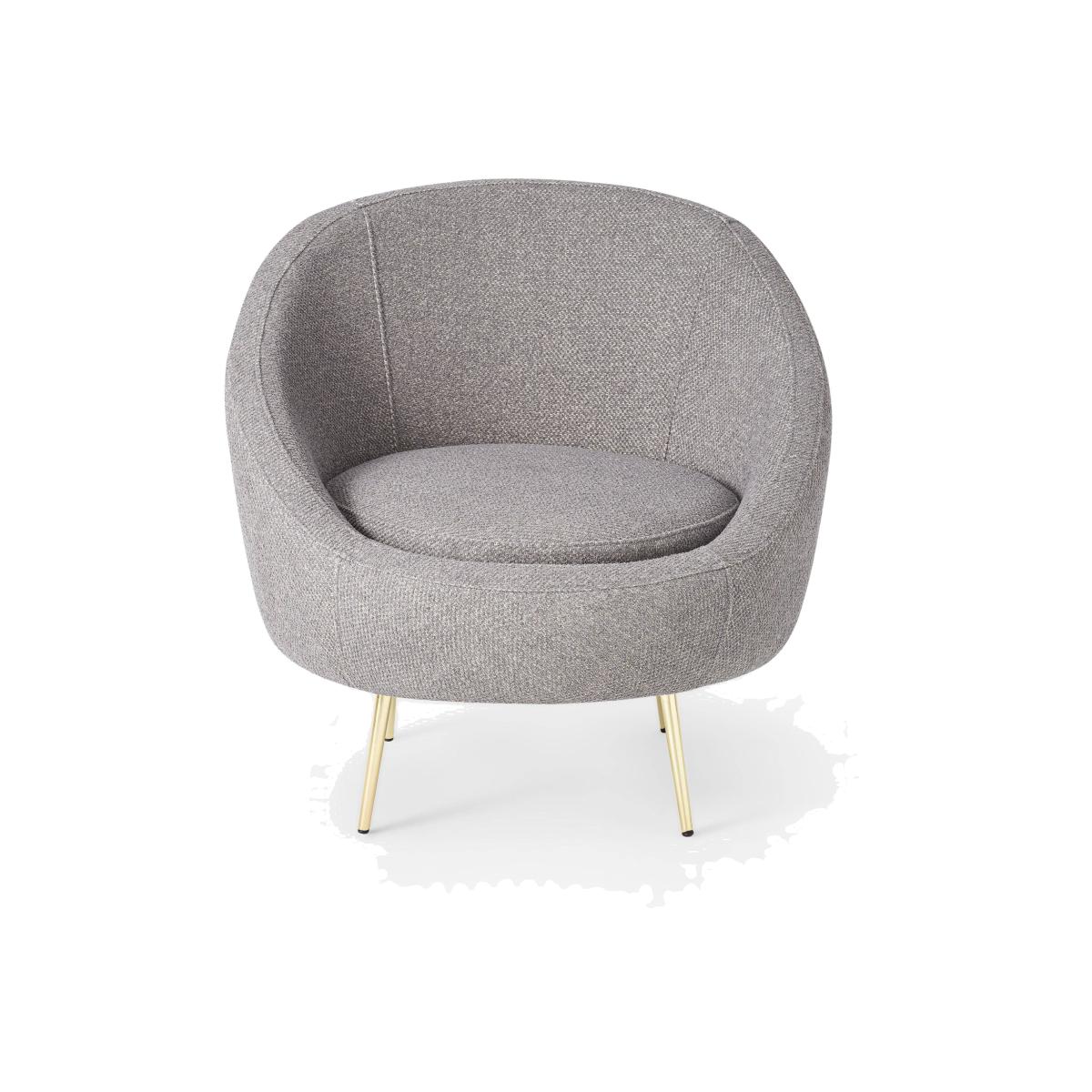 Create a serene cocoonish nook with our Doro accent tub chair. Sleek yet welcoming, Doro's sumptuous lines take comfort to an elegant level in your living space. This curved tub boasts brushed brass stiletto legs and neutral cotton upholstery that add a touch of elegance. Available in a calm green, serene cream, or subtle grey, these harmonious shades complete its minimalist-meets-retro look. Doro is perfect as a matching pair, elevating any living room with its double charm.