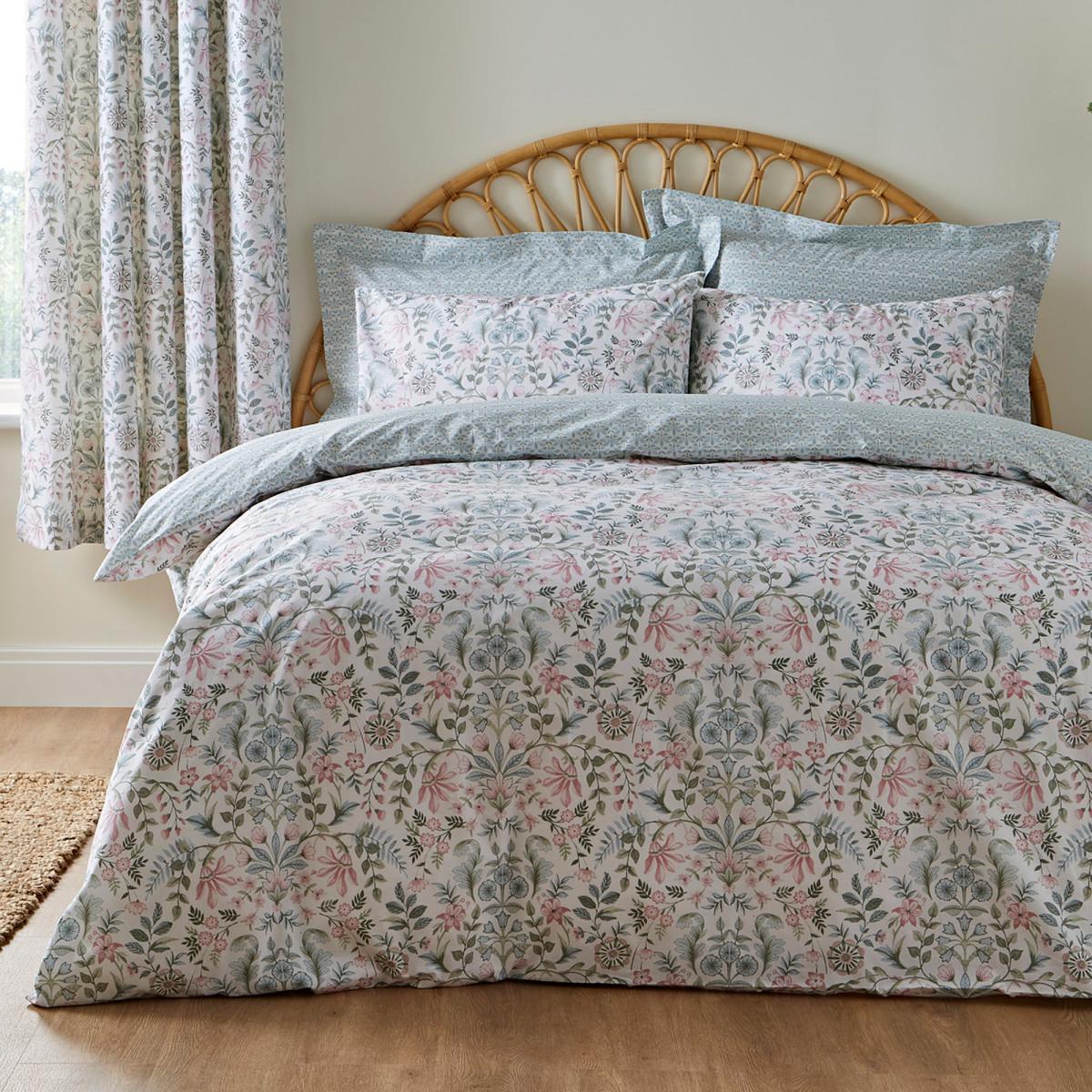 Boasting an ornate floral printed design, this stunning reversible bedding set is ideal for adding a feminine touch to your bedroom. Crafted from 100% cotton this bedding set is soft, durable, and machine washable. Coordinating curtains are also available. This collection is verified by OEKO-TEX® and independently tested for harmful substances as well as manufactured using sustainable processes under socially responsible working conditions. MADE IN GREEN by OEKO-TEX® is a unique product label to trace the countries and production facilities - search the product label for more information.