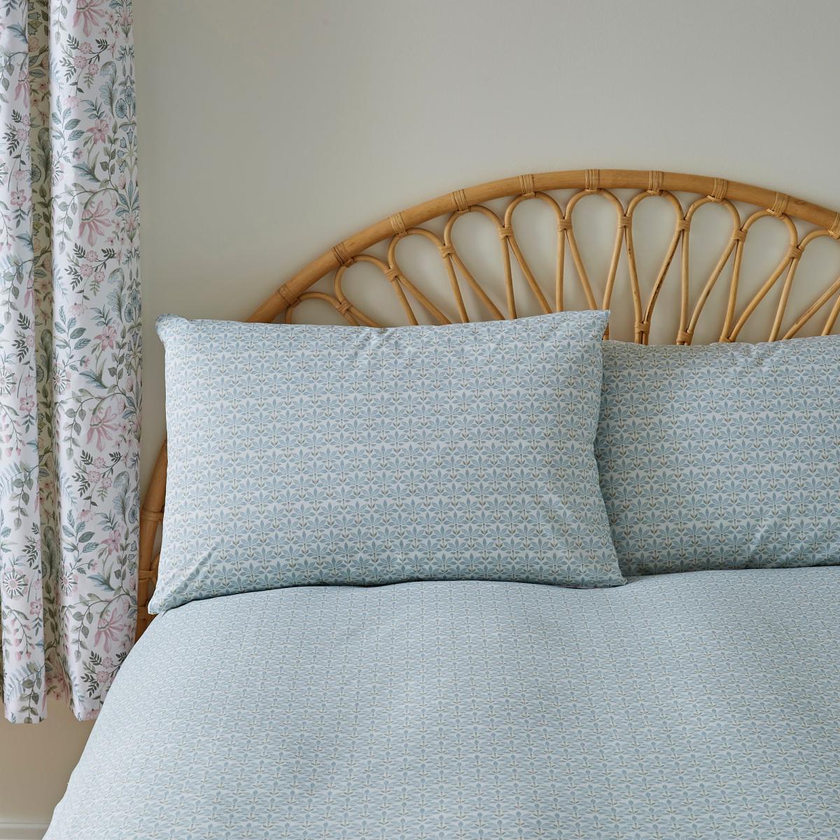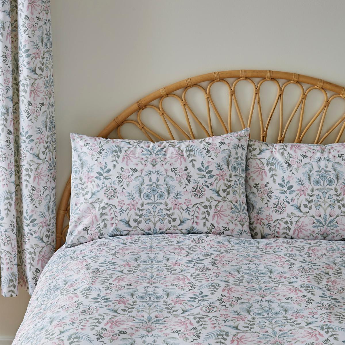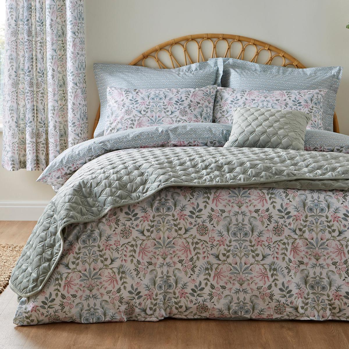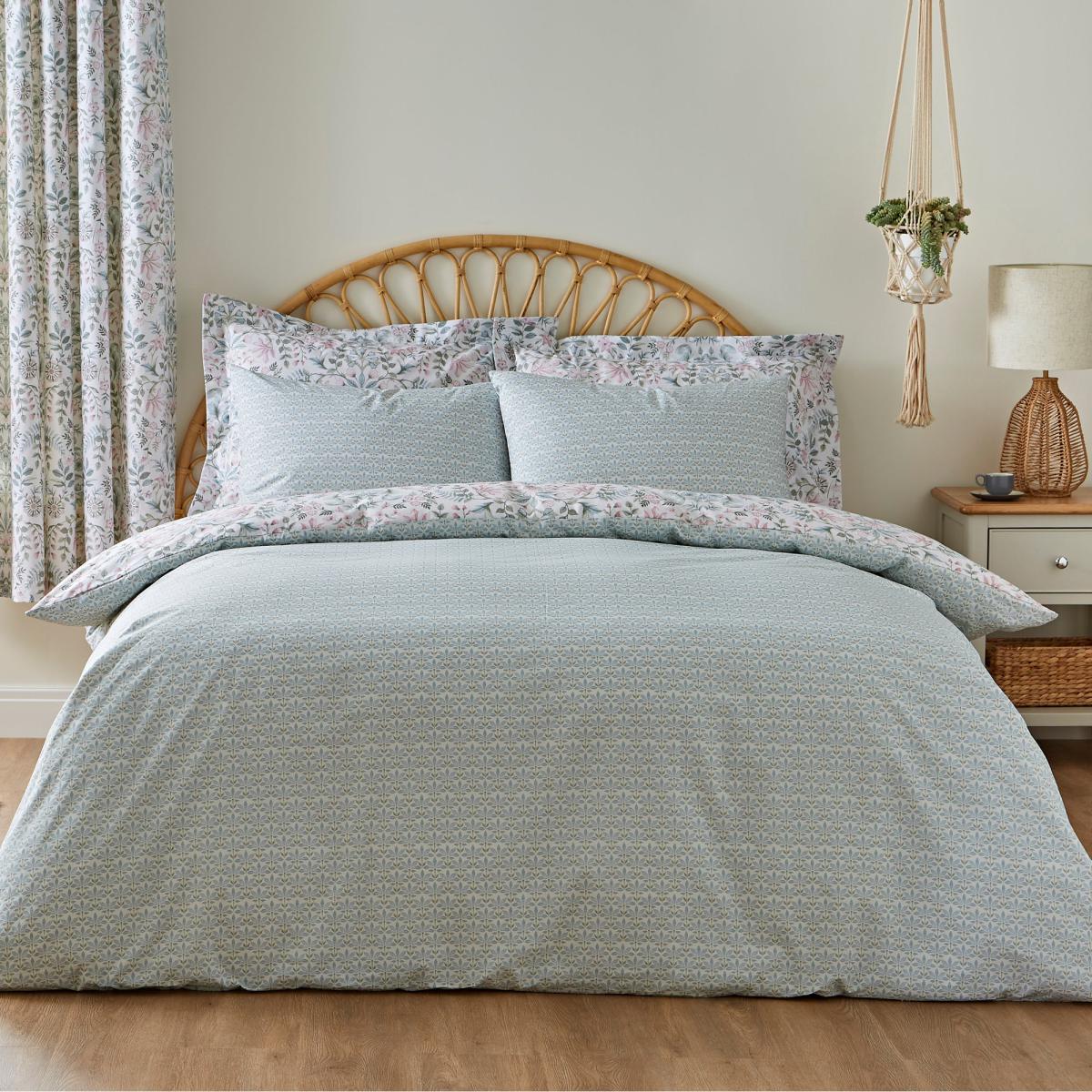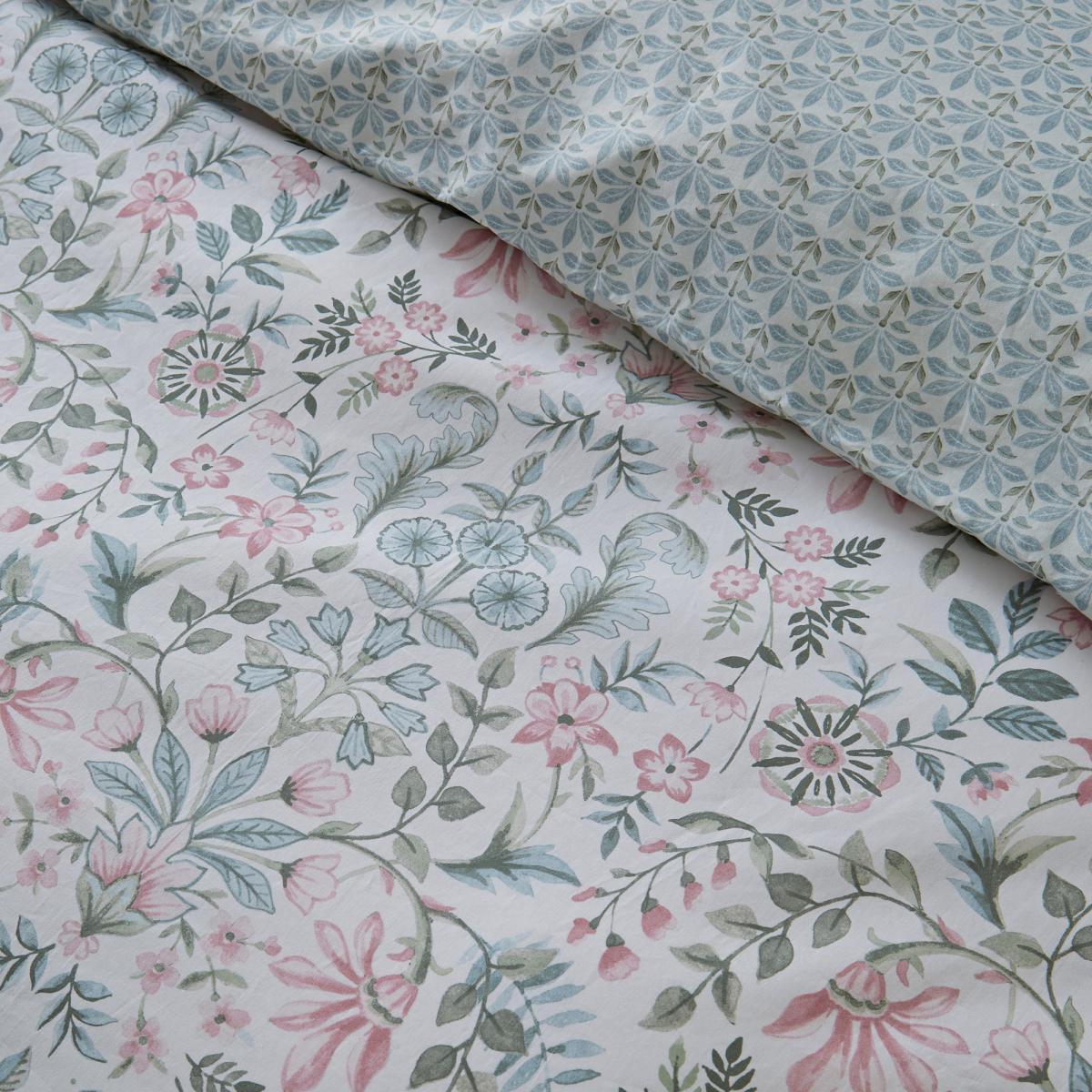 Dorothy Floral Green 100% Cotton Reversible Duvet Cover and Pillowcase Set Light Green