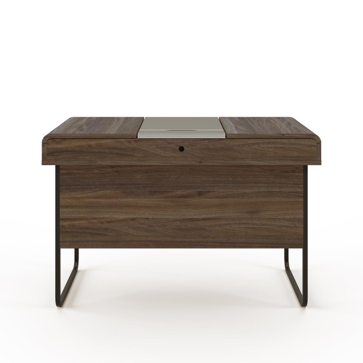 With it's clean, understated contemporary design, the Dorset desk is ideal for those who need an uncluttered and cable-free workspace. This Dorset features a wealth of storage options all designed to fit modern technology on a classically styled desk, including a rear power adapter storage, two side sliding storage areas, and a large flip up front panel, all complete with internal cable management. This stunning desk comes in a beautiful wood-effect finish, complemented perfectly by the grey central panel and black painted metal frame.