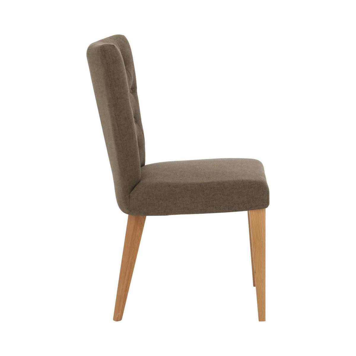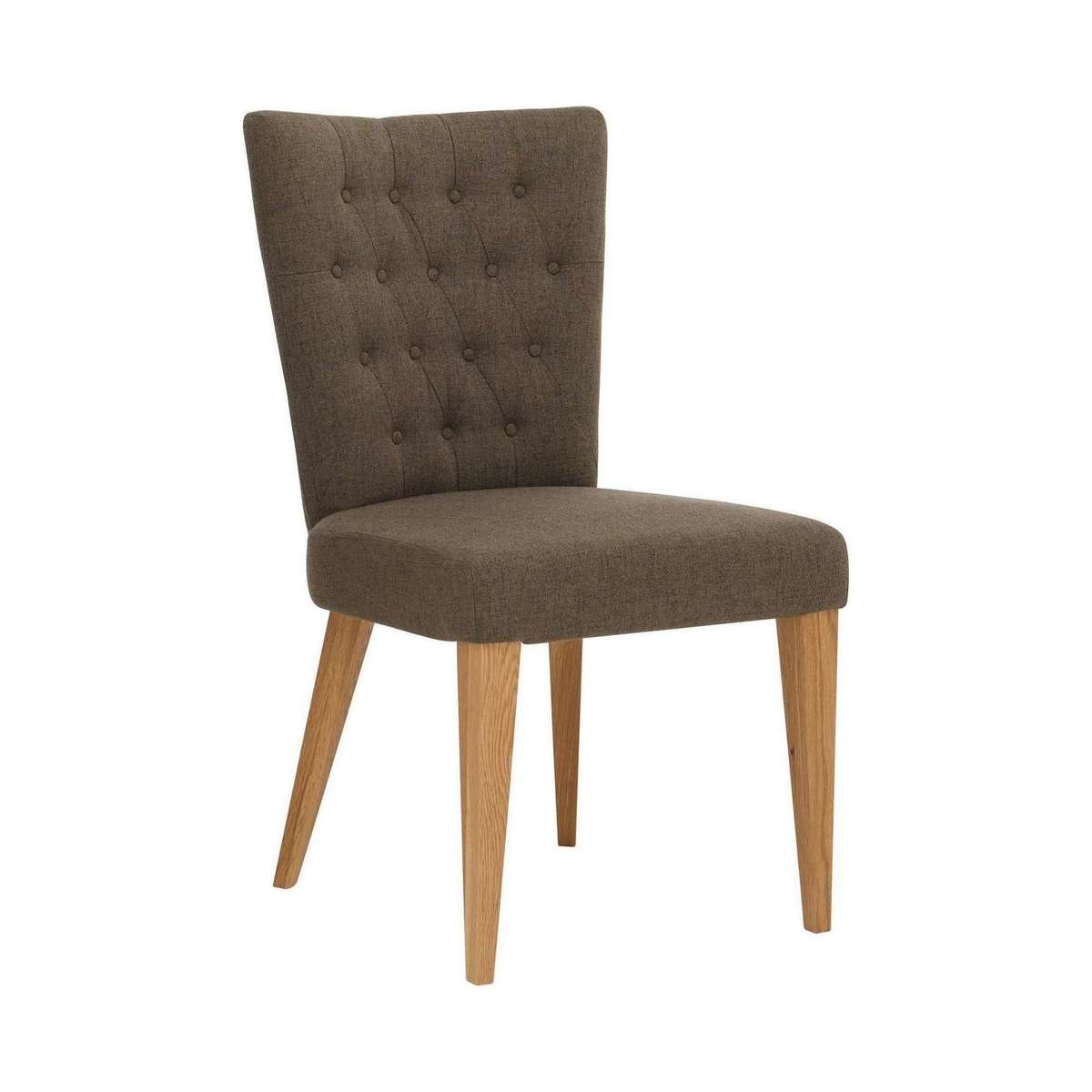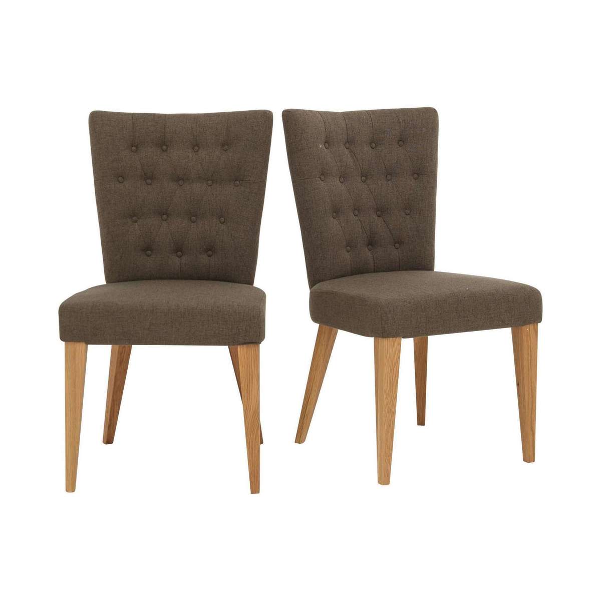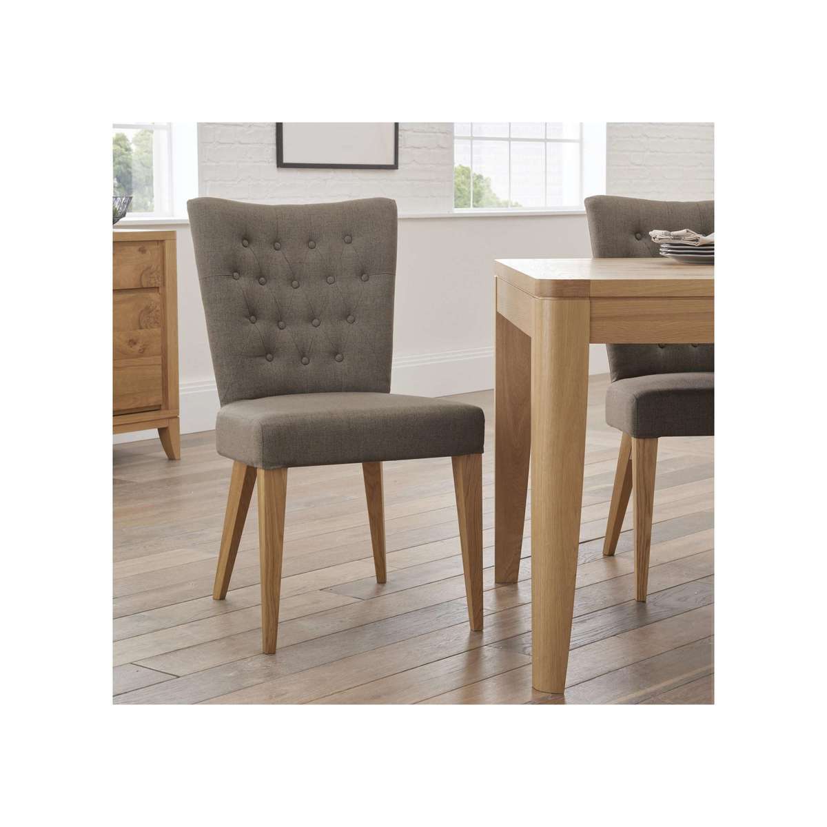 It’s the lovely details that make the Dorset pair of fabric dining chairs so stylish.;Beautifully cushioned, this pair of chairs features finely-tailored upholstery and deep buttoning. The sprung seats are comfortably wide and the curved backs taper outwards to provide excellent lumbar support. Chairs are set on slender solid American white oak legs.;Covered in a high-quality hardwearing fabric in a subtle grey colour, these chairs are designed to suit any interior. They’re classic enough in style to complement a traditional dining room, yet their roomy shape and thoroughly modern approach to cushioned comfort suits any contemporary setting.;The Dorset pair of fabric dining chairs is part of the gorgeous Dorset range of dining and living room furniture. This range offers two sizes of dining table, upholstered dining chairs and dining armchairs, and a wide range of storage and occasional pieces.;Did you know? Pippy oak has natural 'tiger' marks, so every piece is unique with its own knots and markings.
