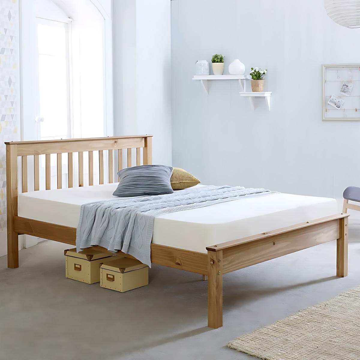 The Dorset Waxed Pine Wooden Bed effortlessly introduces subtle style to any home decor with its natural waxed pine finish. Its shaker-style headboard adds a touch of elegance while ensuring versatility to suit various tastes. This bed features a raised base, providing ample under-bed storage to keep your home tidy and organized. Crafted from high-quality pine wood, the Dorset Wooden Bed offers durability and longevity, and its slatted base provides additional support for your mattress. It's conveniently delivered flat-packed with comprehensive instructions for quick and easy self-assembly.