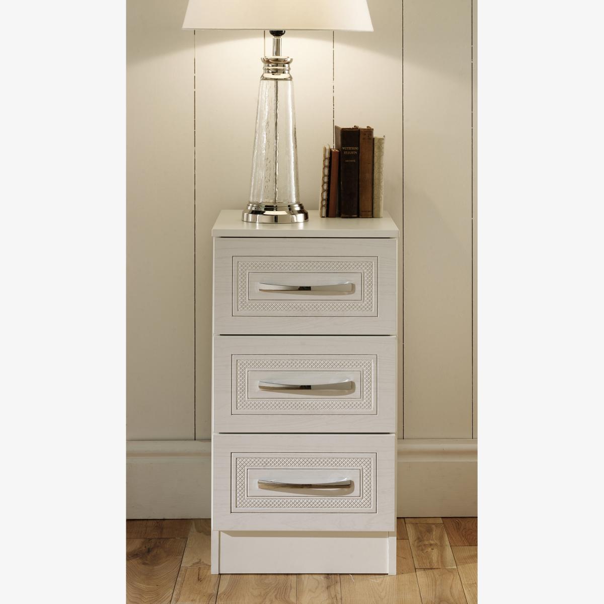 A small vanity stool. A light simple, yet sturdy design, with a soft cushioned seat. Makes an idea companion to a desk or vanity. The defining feature of the Dorset range is the detailed engraving on the doors and drawers which creates a visually aesthetic look. Available in a choice of wood effect finishes, you can choose the perfect combination of pieces to complete the mood of your room. All our furniture is made in the United Kingdom, to the highest quality. It is delivered direct to your location of choice by one of our two man delivery teams, and come full assembled (although legs may be removed to prevent damage in transit).