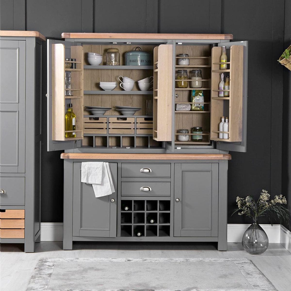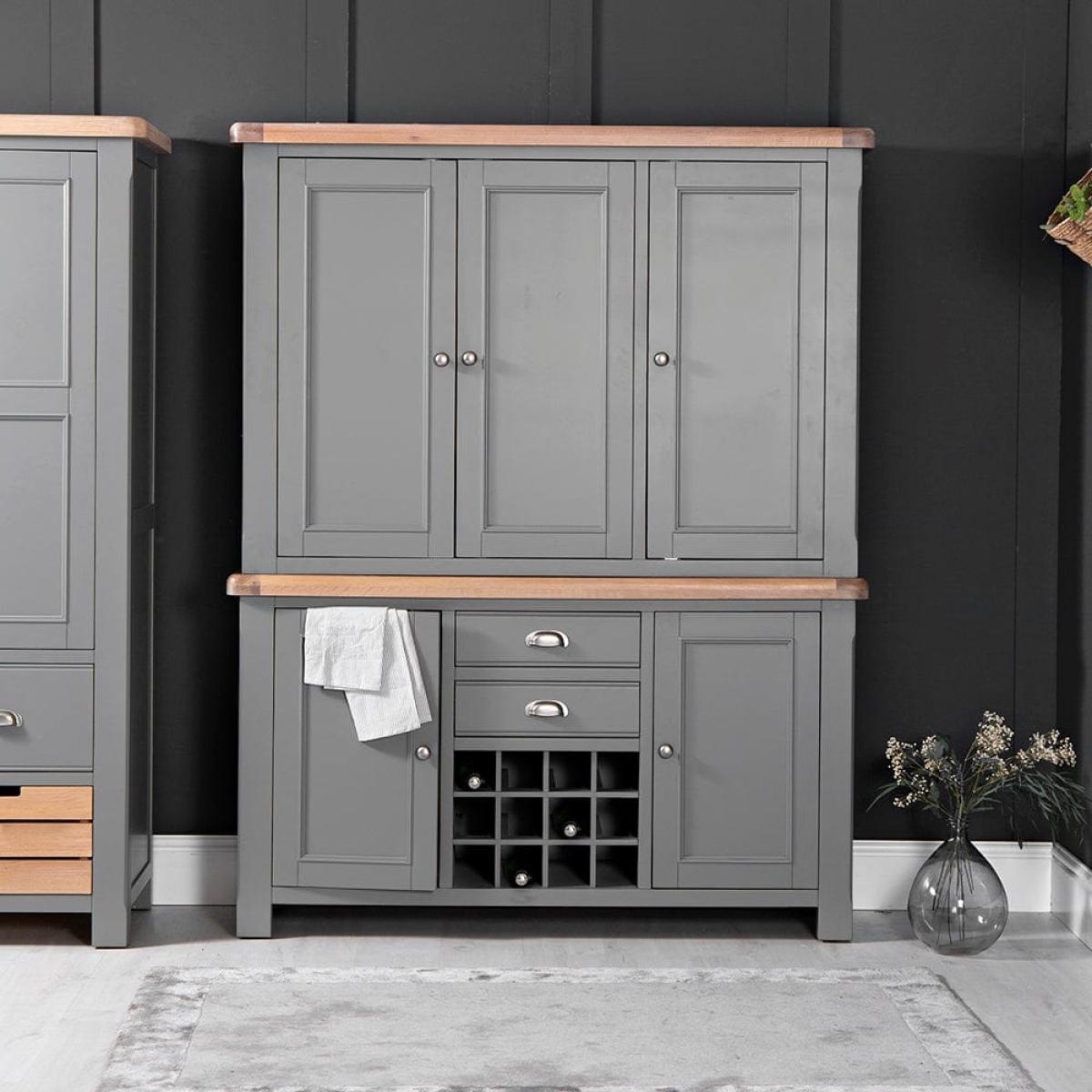 Dorset Storm Grey Painted Oak Large Larder Top for Large Sideboard Wine Rack (Top Only)