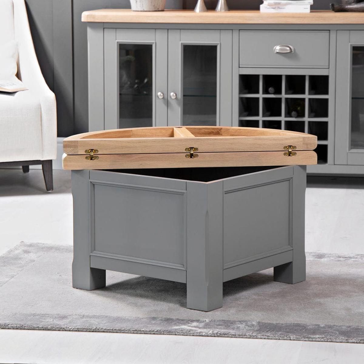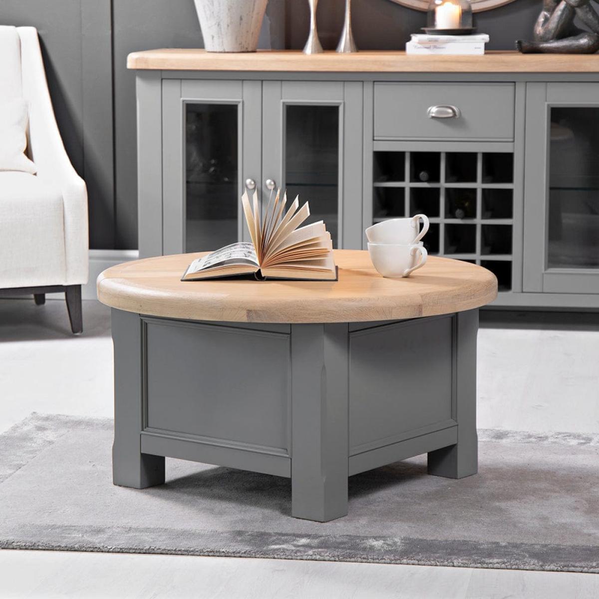 Dorset Storm Grey Painted Oak Round Coffee Table With Storage