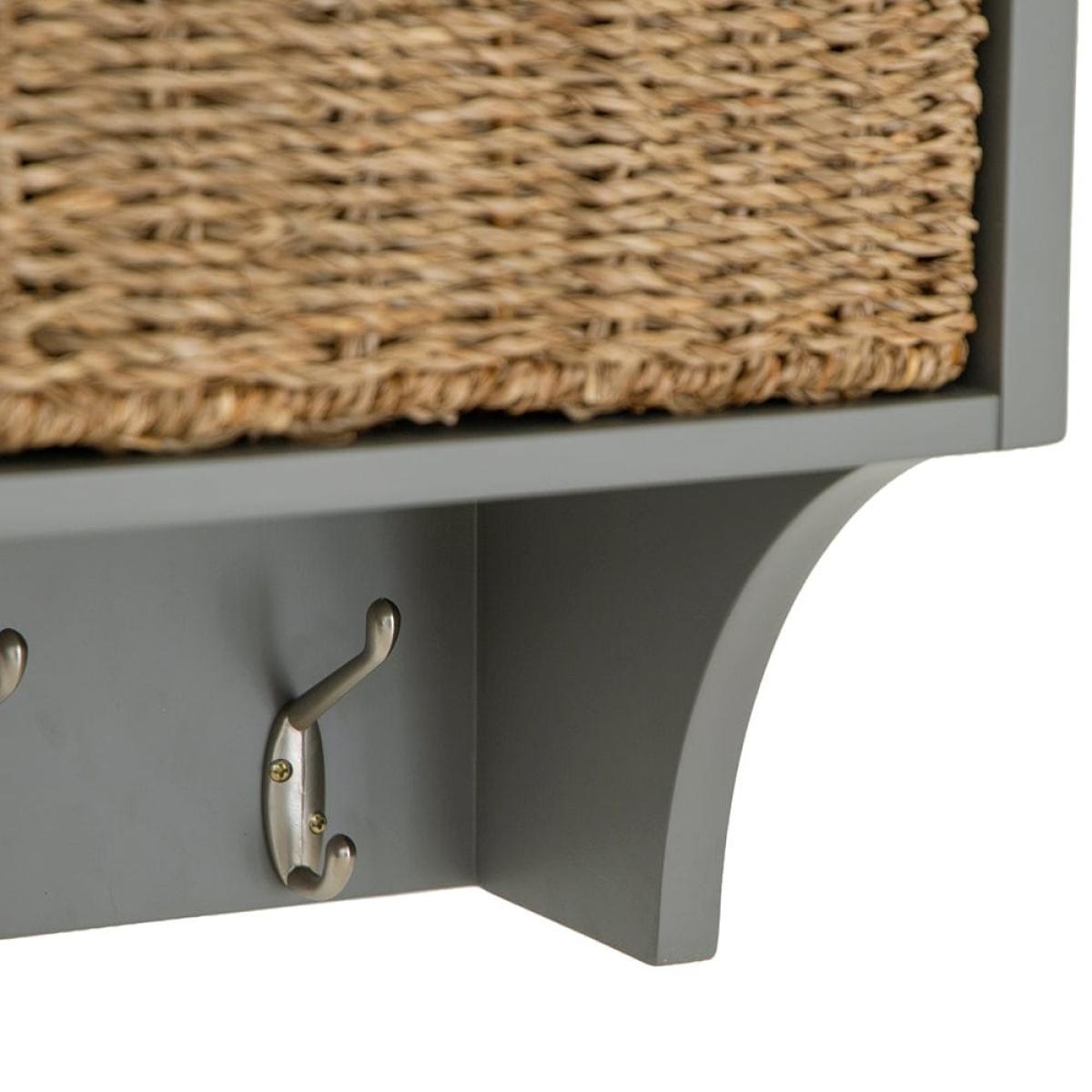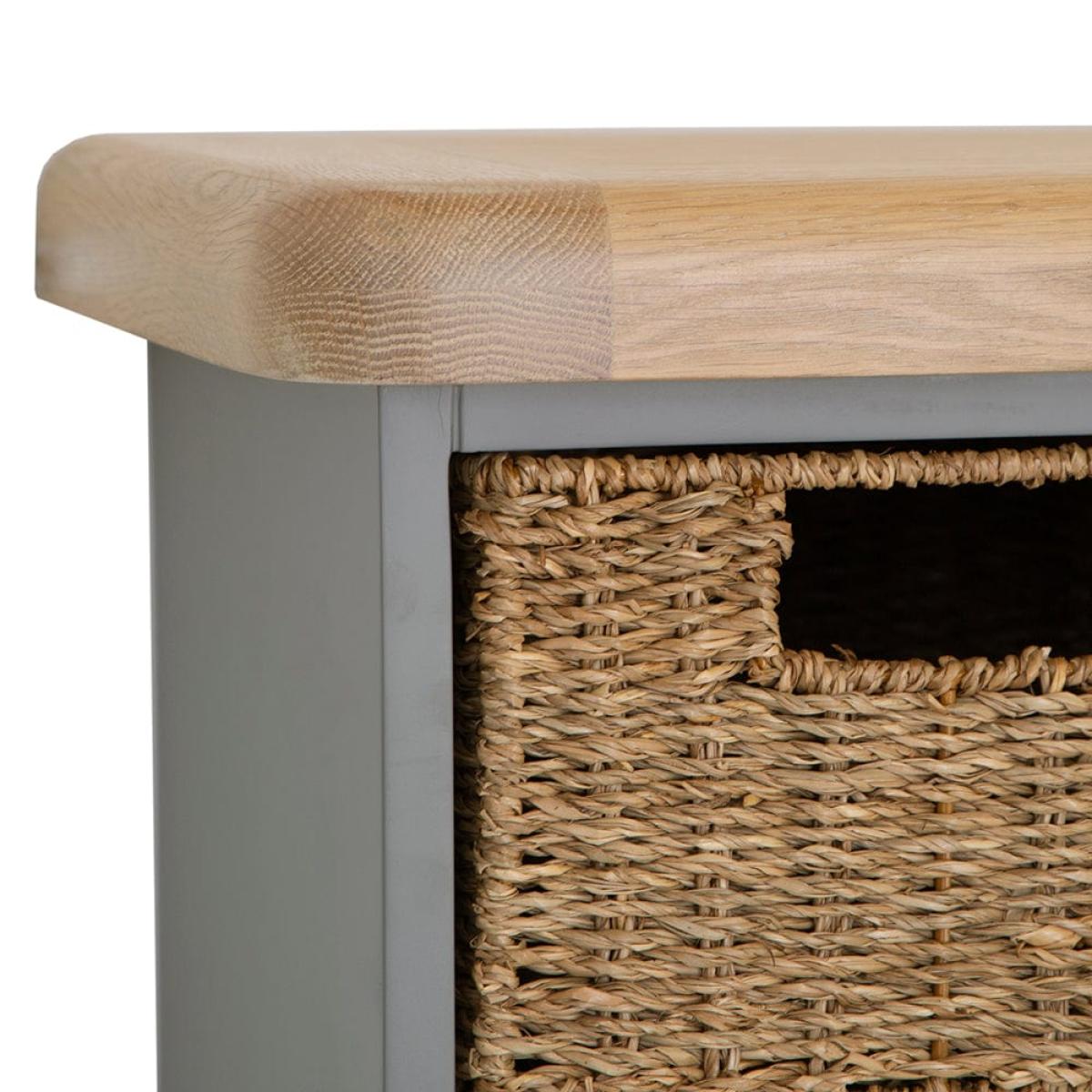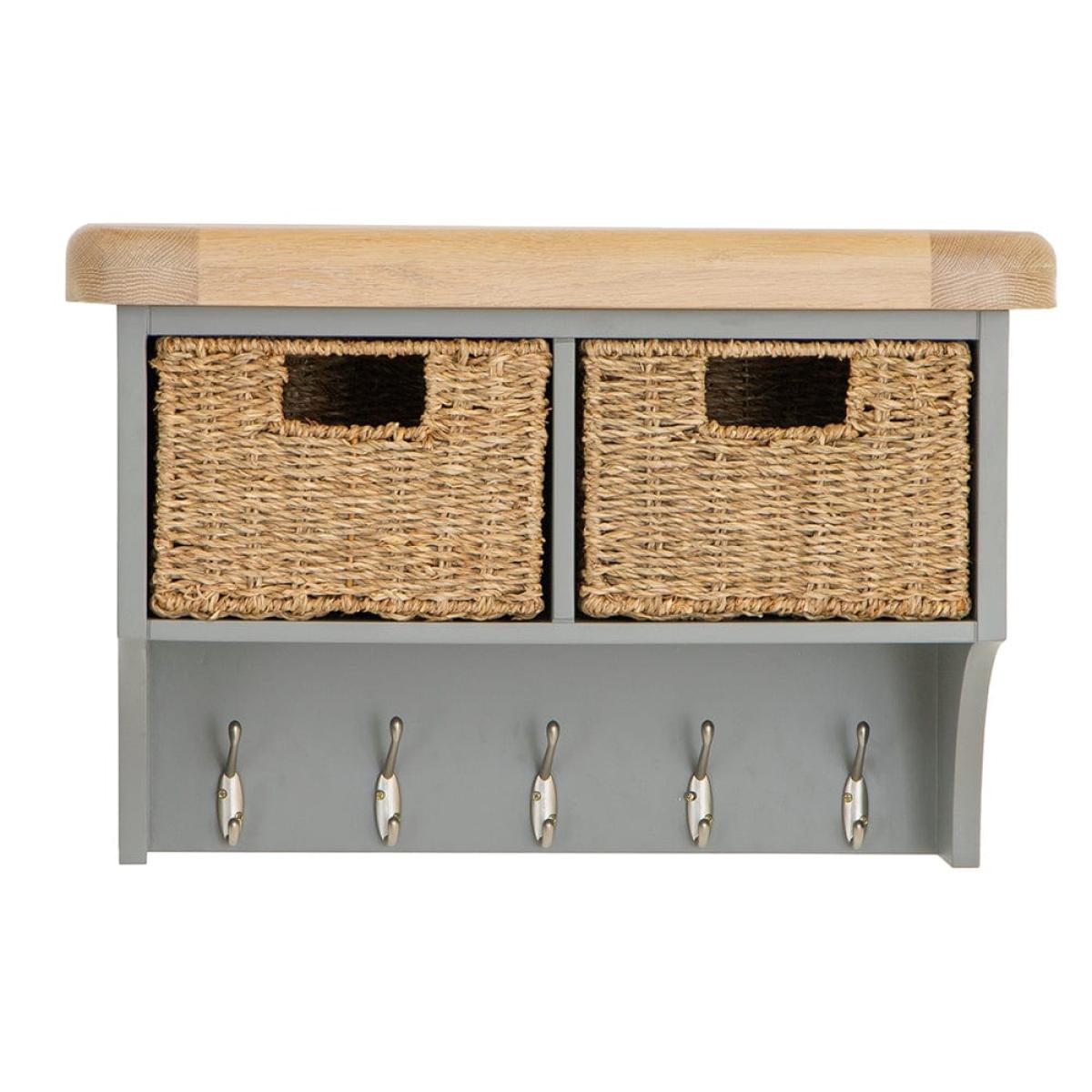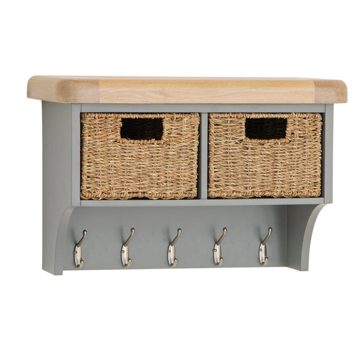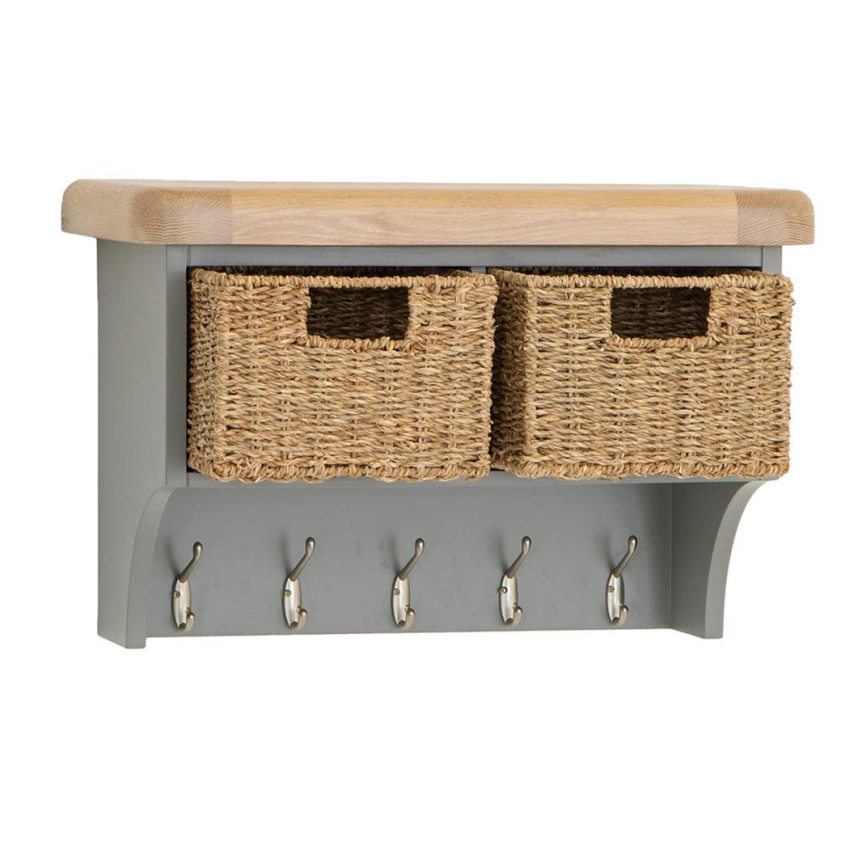 Dorset Storm Grey Painted Oak Small Coat Rack with Wicker Baskets