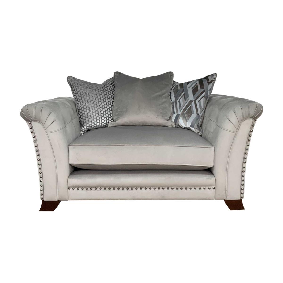 Design. Dressed in soft and sumptuous velvet, the Dorsey pillow back snuggle chair will look just the part in a luxurious living room. Justifying its decadent appearance, the chair features high-quality fillings and plump scatter cushions for all-around comfort. A modern design with traditional influence, this spacious snuggle chair will sit beautifully in both contemporary and classic interiors. Shop the complete Dorsey collection for coordinating sofas, footstools and more.