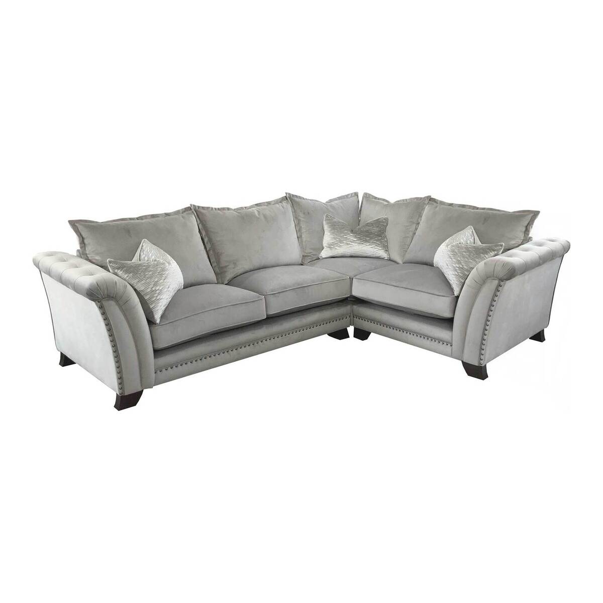 Featuring deep seats and an L-shaped design, the Dorsey small corner sofa will help make the most of your space. The perfect balance of soft and supportive, it brings together foam, fibre and feather cushion fillings to create a level of comfort that’s fit for a king. With style and quality stitched into every inch, this small corner sofa has huge potential. Also comes as a pillow back design. Matching chairs, footstools and more available.
