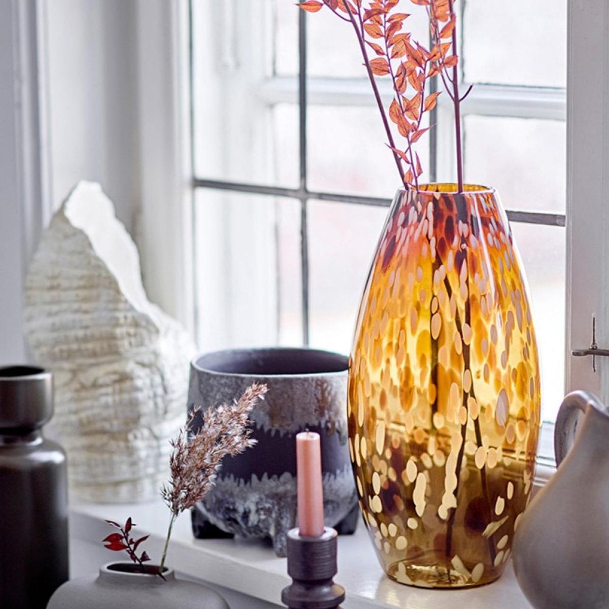 This beautiful mouthblown vase is a contemporary classic. Perfect for big bouquets of fresh or dried flowers, its rich and inviting pattern will add a cosy touch to any room. Each piece is unique, making it perfect for gifting, and the curved decadent design looks amazing both empty and full.