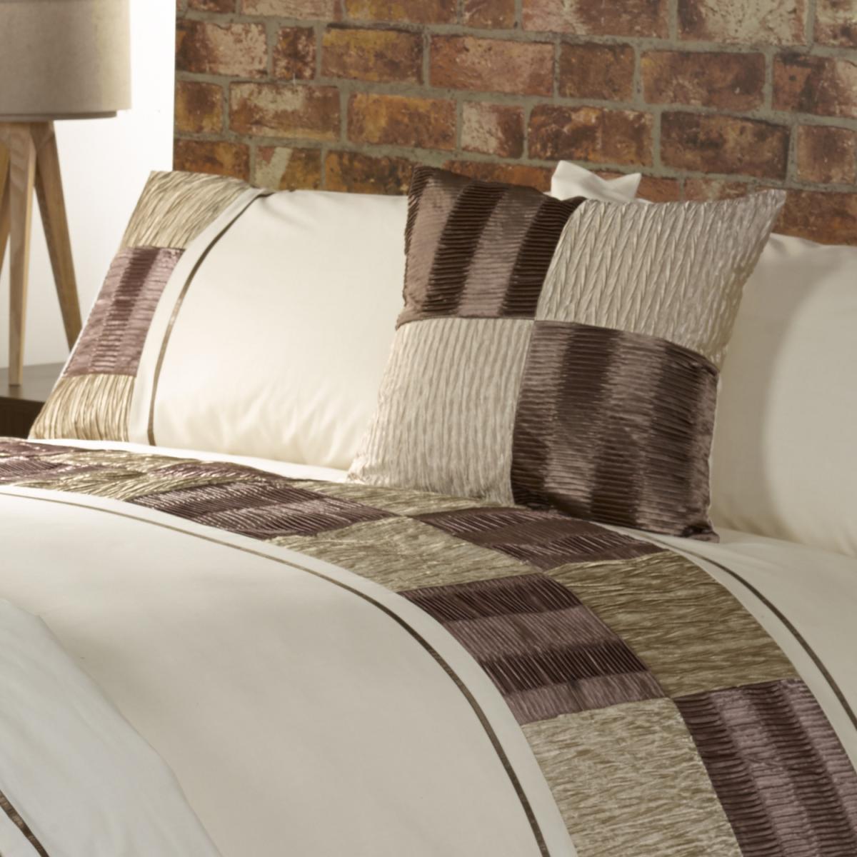 Dortmund cushion cover has a beautiful dazzling decorative detail in chocolate gold coloured blocks, exquisitely designed to add a touch of glitz and glam to your bedroom.