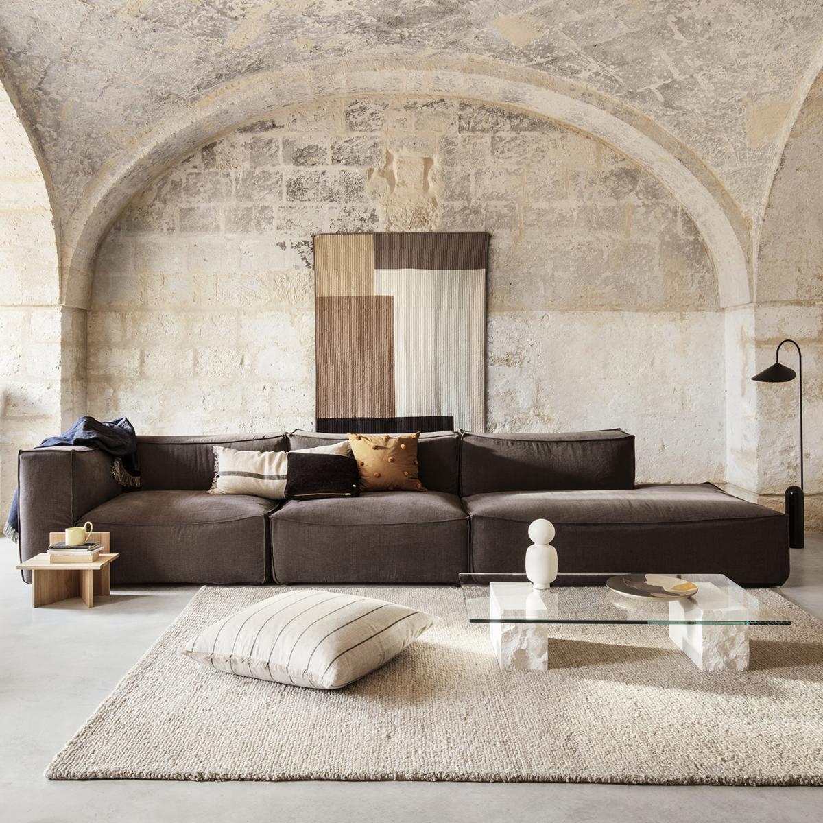 The Dot cushion by Ferm Living has been crafted from beautiful yarn balls recycled from plastic bottles to create a lovely and sustainable pillow. The yarn is beautifully fashioned using what is known as "punch needle" technology, an innovative embroidery technique where the yarn is pulled through cotton fabric to create different types of three-dimensional textures. The Dot is an eminently playful pillow that fits well on the bed in the children's room or on the sofa in the living room.