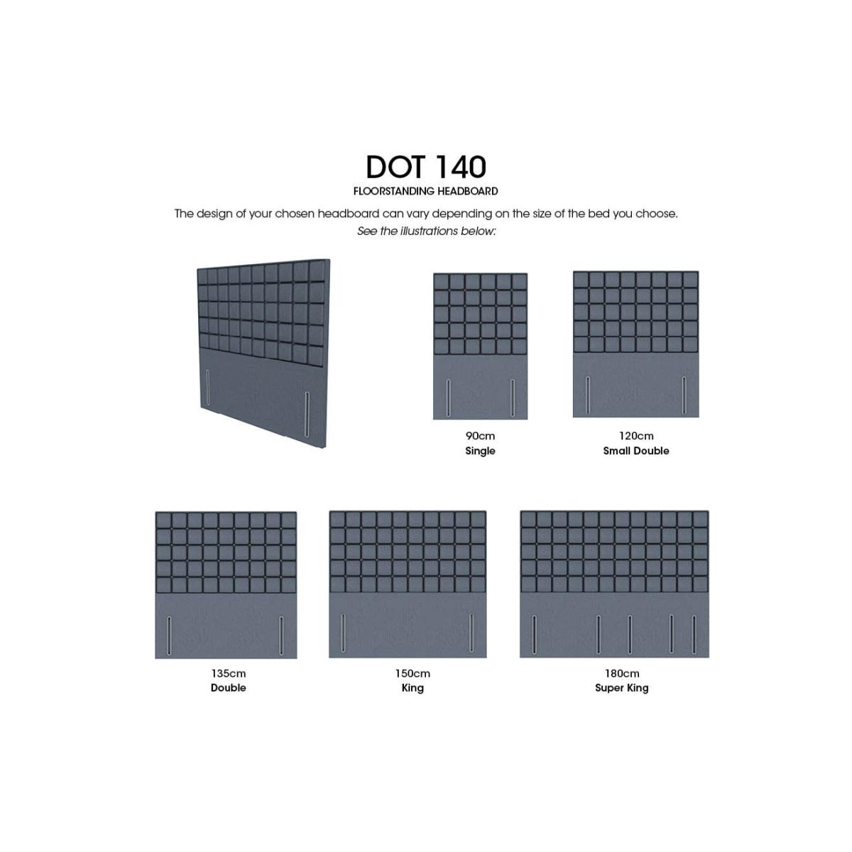 Discover The Artisan Collection, designed to bring handcrafted luxury and style to your bedroom. This premium range includes a selection of divan bases – from traditional platform tops offering a firmer feel to sumptuous pocket sprung options for enhanced mattress comfort. Many divan bases are available with storage drawers, in both standard and on-trend shallow designs. Complement your divan with one of the collection’s striking floor-standing headboards, including standout winged designs. Each piece in The Artisan Collection is beautifully upholstered in a wide choice of luxury fabrics and handcrafted in the UK, ensuring exceptional quality and elegant style for your sleep sanctuary. Fully upholstered and featuring a bold geometric design, our Dot medium floor standing headboard brings eye-catching style to your bedroom. Handcrafted for Furniture Village. Why you'll love it This thoroughly modern headboard has a cubed, geometric design. Generously cushioned for ample support. Fully upholstered from top to floor for a flawless finish and a luxurious look. Made with sustainable FSC-sourced wood. In a choice of beautiful fabrics. Handcrafted in the UK. Also available as a strutted headboard. Find the Dot high floor standing headboard only at Furniture Village. What you need to know This floor standing headboard is supplied with bolts to attach it to a divan base. Available in single, small double, double, king and super king sizes. 140 cm tall. A 130 cm and 150 cm headboard is also available. Clean regularly using a soft brush or vacuum with the curtain attachment. Deal with any spills promptly. Professional cleaning advised for oil- and grease-based stains. Some fabrics can show wear on areas of more use or in direct sunlight. Item code: DOT-H450--012