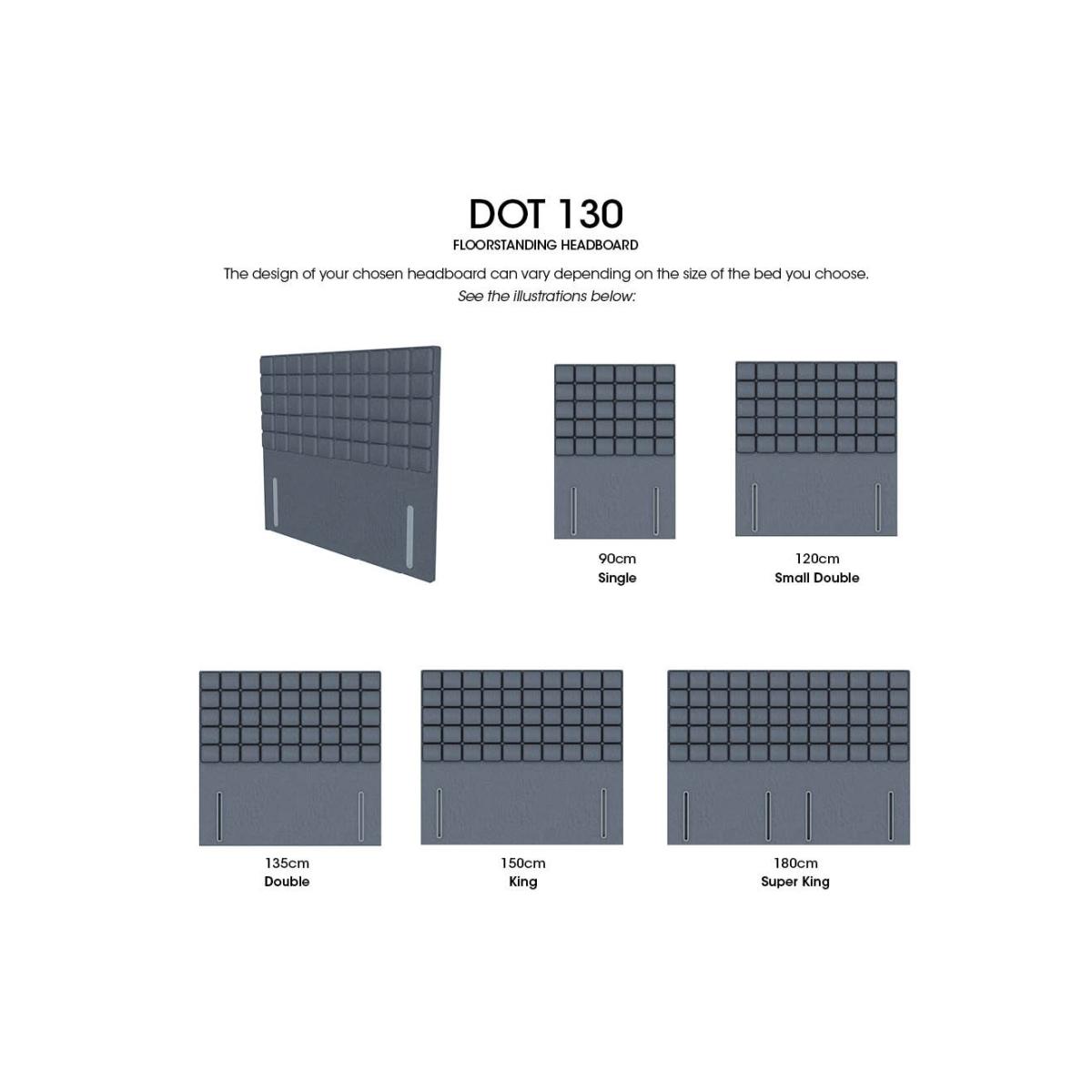 Discover The Artisan Collection, designed to bring handcrafted luxury and style to your bedroom. This premium range includes a selection of divan bases – from traditional platform tops offering a firmer feel to sumptuous pocket sprung options for enhanced mattress comfort. Many divan bases are available with storage drawers, in both standard and on-trend shallow designs. Complement your divan with one of the collection’s striking floor-standing headboards, including standout winged designs. Each piece in The Artisan Collection is beautifully upholstered in a wide choice of luxury fabrics and handcrafted in the UK, ensuring exceptional quality and elegant style for your sleep sanctuary. Fully upholstered and featuring a bold geometric design, our Dot high floor standing headboard brings eye-catching style to your bedroom. Handcrafted for Furniture Village. Why you'll love it This thoroughly modern headboard has a cubed, geometric design. Generously cushioned for ample support. Fully upholstered from top to floor for a flawless finish and a luxurious look. Made with sustainable FSC-sourced wood. In a choice of beautiful fabrics. Handcrafted in the UK. Also available as a strutted headboard. Find the Dot standard floor standing headboard only at Furniture Village. What you need to know This floor standing headboard is supplied with bolts to attach it to a divan base. Available in single, small double, double, king and super king sizes. 130 cm tall. A 140 cm and 150 cm headboard is also available. Clean regularly using a soft brush or vacuum with the curtain attachment. Deal with any spills promptly. Professional cleaning advised for oil- and grease-based stains. Some fabrics can show wear on areas of more use or in direct sunlight. Item code: DOT-H240--043