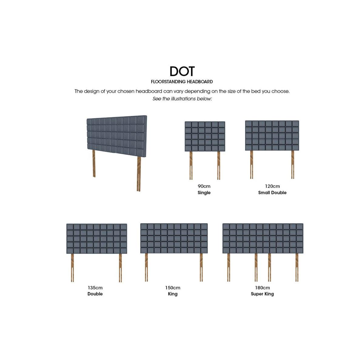 Discover The Artisan Collection, designed to bring handcrafted luxury and style to your bedroom. This premium range includes a selection of divan bases – from traditional platform tops offering a firmer feel to sumptuous pocket sprung options for enhanced mattress comfort. Many divan bases are available with storage drawers, in both standard and on-trend shallow designs. Complement your divan with one of the collection’s striking floor-standing headboards, including standout winged designs. Each piece in The Artisan Collection is beautifully upholstered in a wide choice of luxury fabrics and handcrafted in the UK, ensuring exceptional quality and elegant style for your sleep sanctuary. Our handcrafted Dot headboard has a modern design that makes an instant impression. Choose from a wide range of luxurious upholstery fabrics. Why you'll love it This thoroughly modern headboard has a cubed, geometric design. Generously cushioned for ample support. Beautifully upholstered for a luxurious look. Made with sustainable FSC-sourced wood. In a choice of beautiful fabrics. Handcrafted in the UK. Also available as a floor standing headboard. Find the Dot standard strutted headboard only at Furniture Village. What you need to know This strutted headboard is supplied with bolts to attach it to a divan base. Available in single, small double, double, king and super king sizes. 130 cm tall. A 140 cm headboard is also available. Clean regularly using a soft brush or vacuum with the curtain attachment. Deal with any spills promptly. Professional cleaning advised for oil- and grease-based stains. Some fabrics can show wear on areas of more use or in direct sunlight. Item code: DOT-H160--019