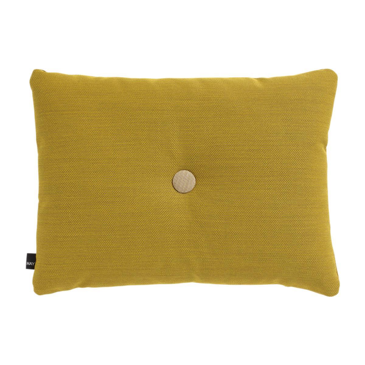 Hay textiles collection is characterized by high-quality fabrics with fresh new motifs and attractive colours. The envelope of the Dot Steelcut Trio cushion is composed of pure new wool (90%) with 10% nylon. The special ‘Steelcut Trio'weave is designed by Frans Dijkmeijer and Giulio Ridolfo : three different colours (1bright, 1 heavier shades and 1 light pastel) are weaved to enhance the three-dimensional effect of the textile, and to make the colours seem to change depending on the angle of perspective. Dot Steelcut Trio is a cushion with buttons of contrasting colours on each side. Harmonious colours, authenticity of the material, we are seduced by Dot Steelcut Trio!.