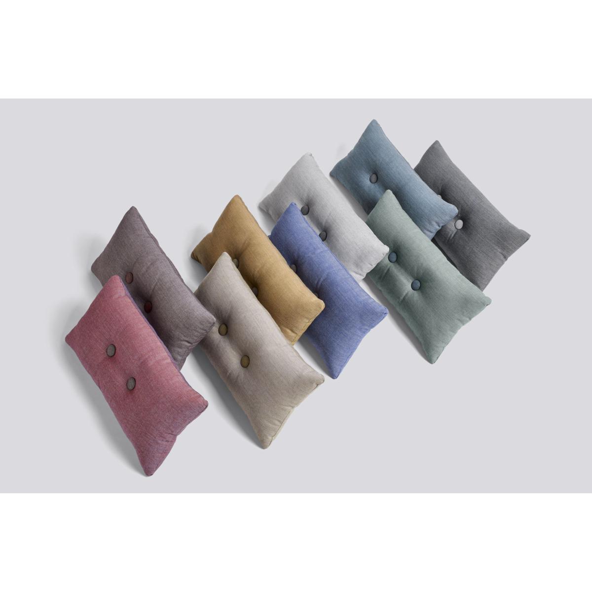 These Dot cushions come in a variety of top-quality fabrics, in different sizes and in a multitude of colours, from the very classy to the ultra-pop. The retro colours match wonderfully: let your imagination run wild, piling up cushions, mixing colours, sizes, etc. The Steelcut Trio Dot cushion is covered with a superb Kvadrat fabric made of pure virgin wool (96%) and nylon (4%). This fabric is characterised by its special Steelcut Trio weave: three different-coloured threads (1 light, 1 dark and 1 pastel) are intertwined to give the fabric a three-dimensional effect and a hue that changes according to the angle from which it is seen. The stylish detail: the large coloured buttons that adorn the cushion, like jewels. The cushions' high-quality fabric and exceptional finishes are typical of the Hay Textile spirit.