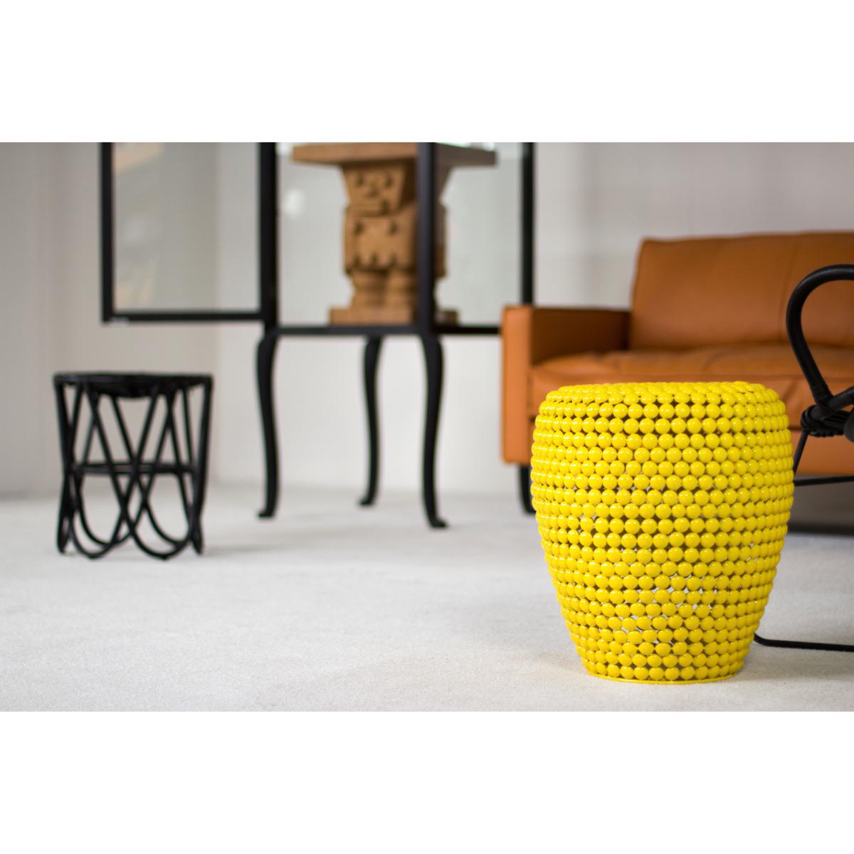 I love this little yellow stool for its bold colour and textured design, which instantly adds personality to any space. It works well in contemporary or eclectic interiors, where a pop of colour can really make an impact. Its compact size makes it versatile - great as a side table, extra seating, or even as a statement piece in a dressing area or under a window. To style it effectively, try pairing it with neutral tones in surrounding furniture, or use it to enhance a room with a playful or modern vibe. Its tactile quality also invites touch, making it a functional yet decorative element.