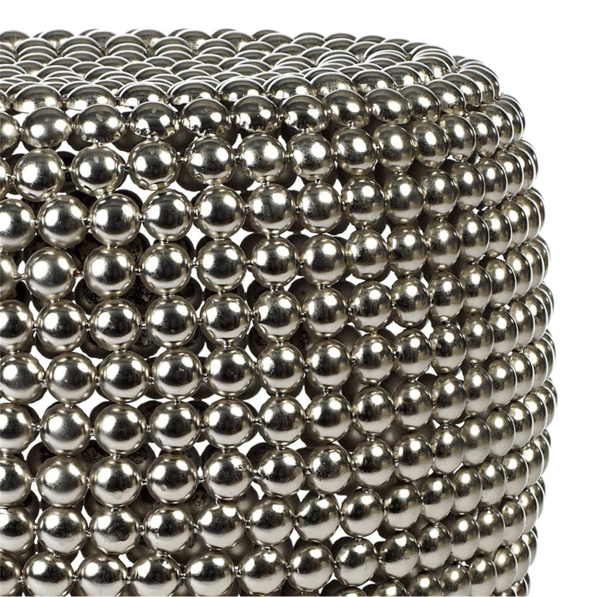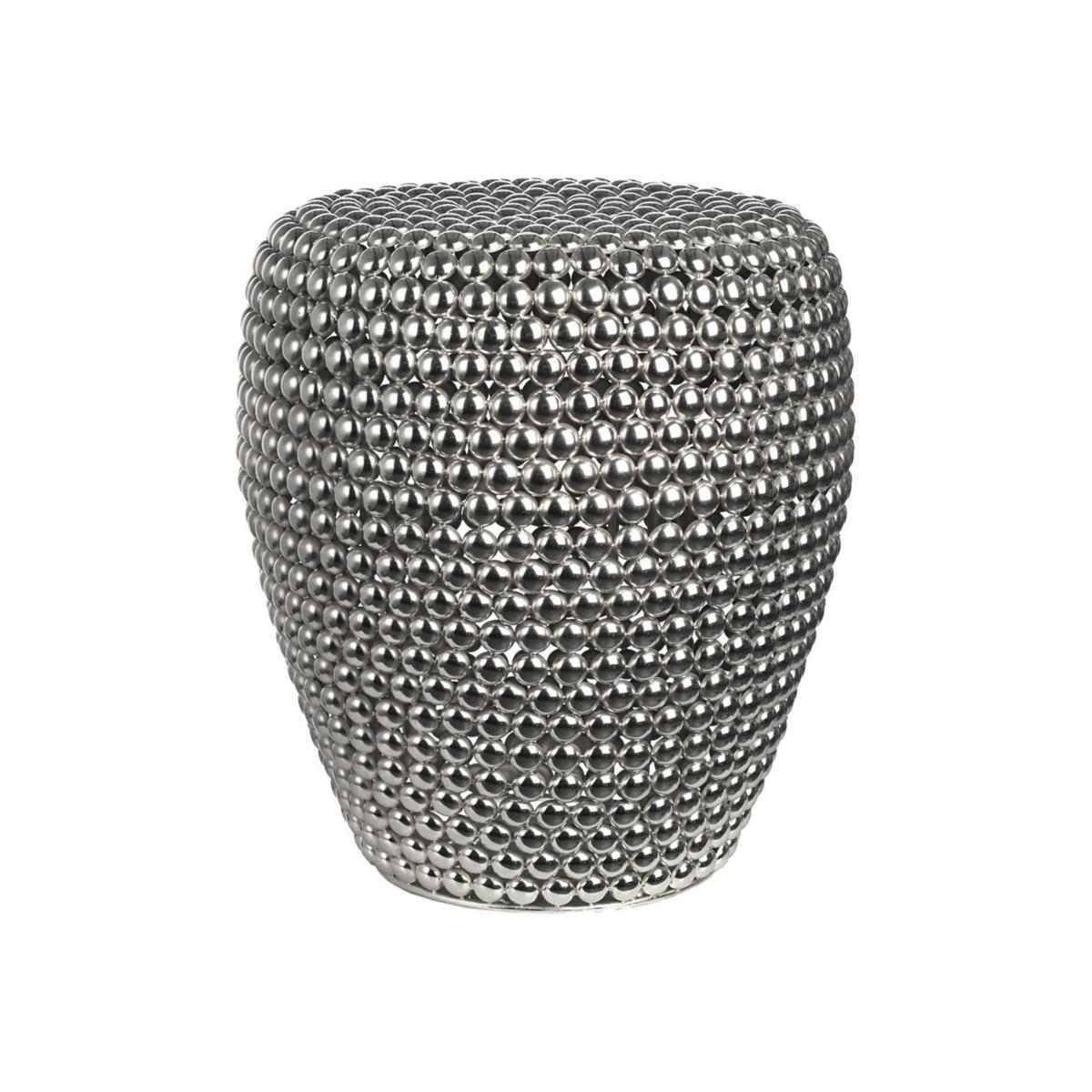 I love this little stunner for its bold, textured finish that adds a contemporary edge to any space. The dot stool works particularly well in modern, eclectic, or even luxe interiors when used as an accent piece or extra seating. It pairs brilliantly with minimalist palettes to introduce a touch of visual interest or mixes well with other metallics for a glamorous vibe. Practical styling tips include placing it beside a statement armchair or using it as a side table topped with a decorative tray or plant. Its durable surface makes it versatile enough for indoor or outdoor use, making it a great, eye-catching addition to a variety of spaces.