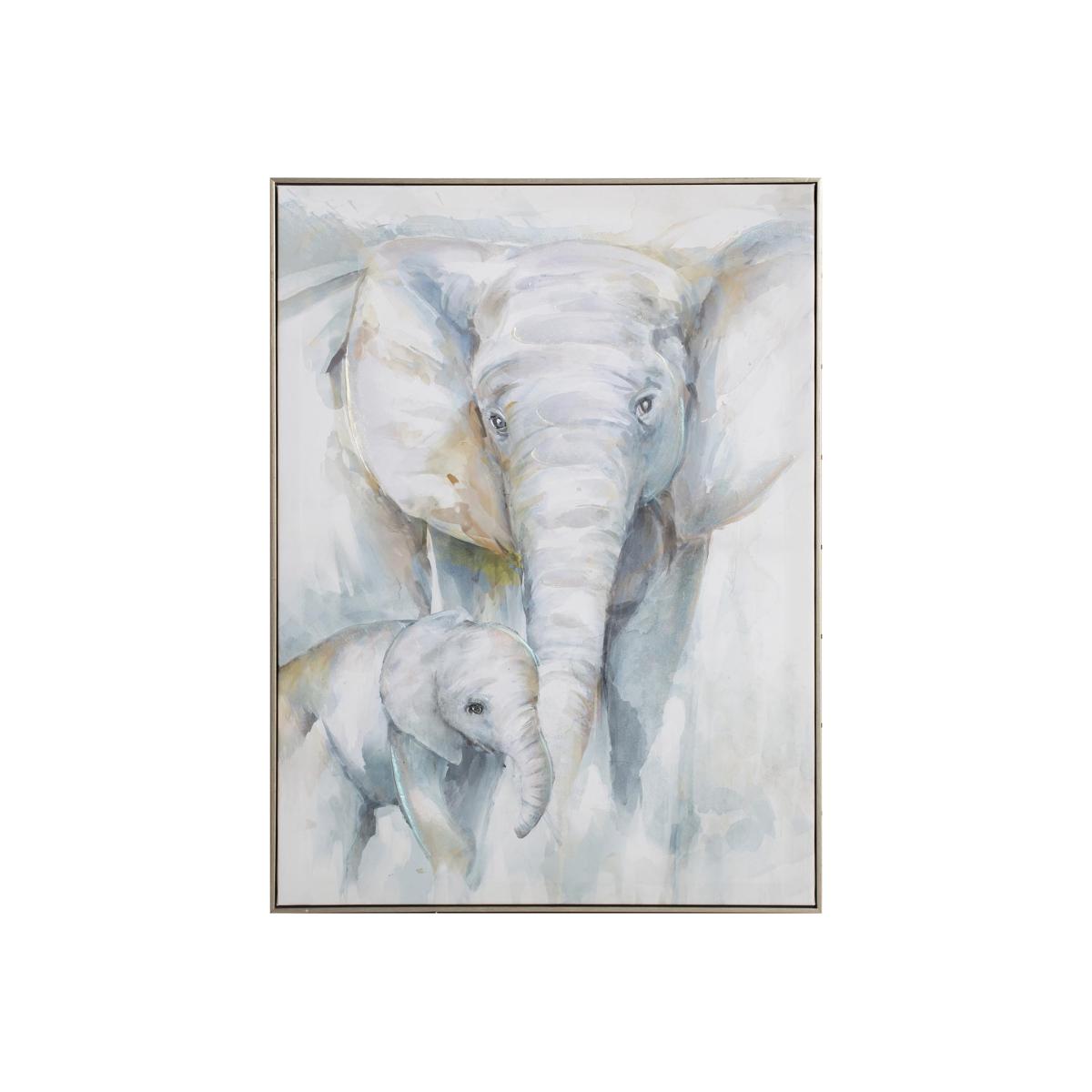 The Doting Elephant Framed Canvas has been crafted with beautiful soft colours in a watercolour effect for a soothing addition to your wall. The print features a parent elephant with their baby, looking dotingly at them. This canvas comes with a sleek gold frame and will look wonderful hanging in your living room, bedroom, or hallway. It would even make a charming addition to a child's nursery.