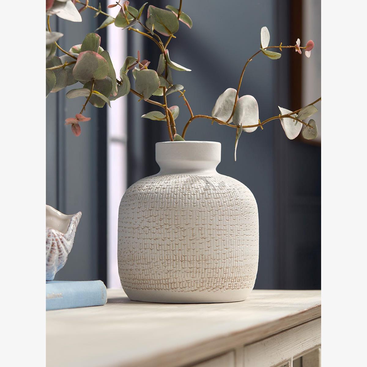 I really like the Dotted Bottle Vase because of its understated texture and simple silhouette, which makes it versatile across many interiors. It works particularly well in minimal or Scandinavian-style spaces where its muted tone can complement natural materials, or in contemporary settings needing a tactile element. For styling, I suggest pairing it with dried botanicals or understated greenery to highlight its subtle detail, or using it as a standalone piece for a clean, sculptural statement. Its size and shape make it ideal for placing on consoles, side tables, or open shelving to add visual interest without overwhelming the space.