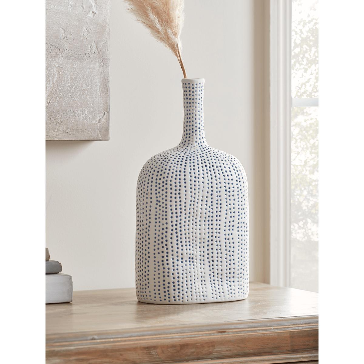 With a soft white finish and sweet textured dotty design, this unique decorative addition will add a subtle hint of colour to your mantelpiece, shelves or windowsill. Enjoy our vase on its own, or paired with a simple faux frond from our. Faux plants and flowers collection.