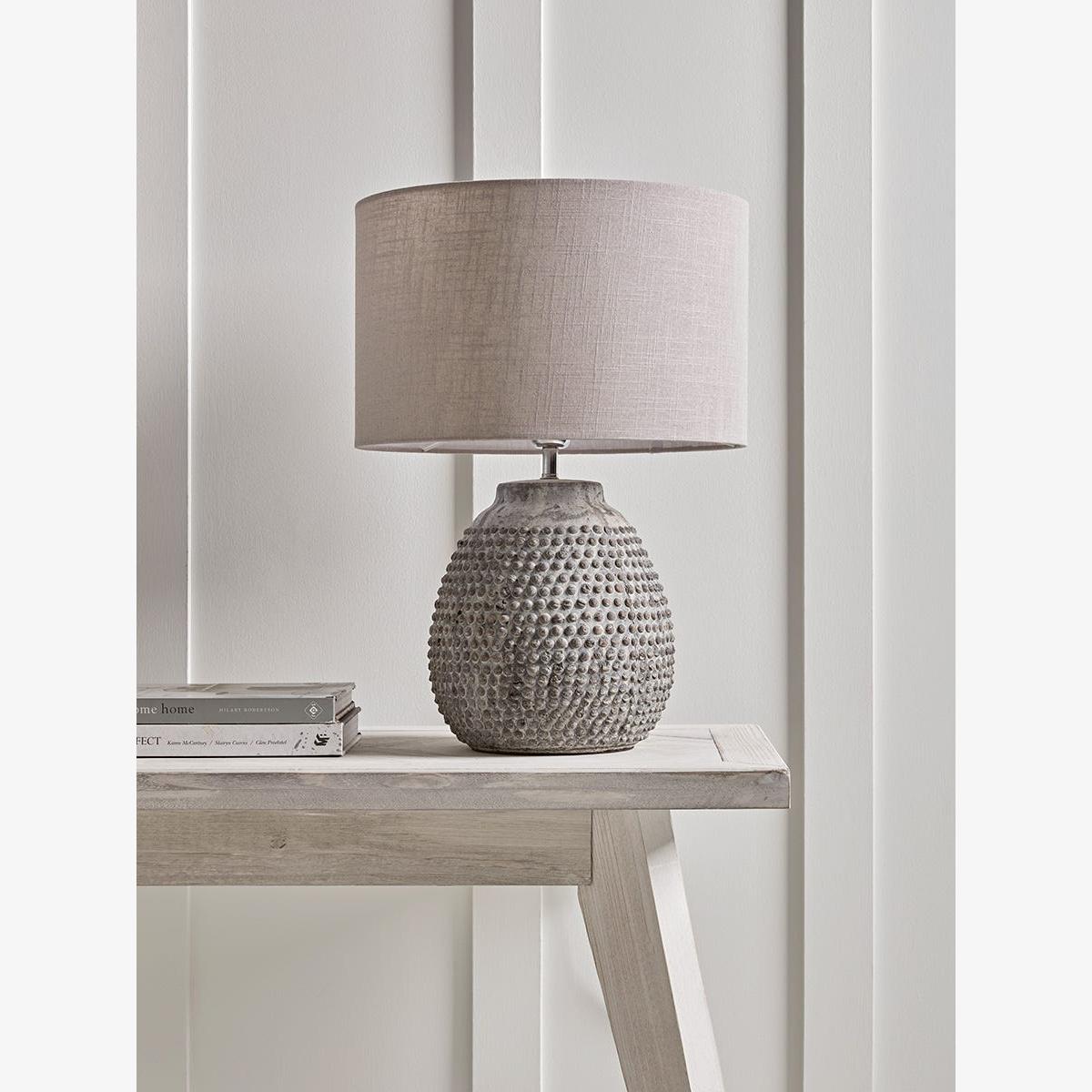Full of enticing texture, our Dotty Concrete Table Lamp will make a statement addition in any home, but particularly one defined by neutral tones and strong shapes. This scandi-inspired piece is completed with a plain linen drum shade. Discover how to create the perfect lighting scheme for your home using our Lighting Buying Guide.